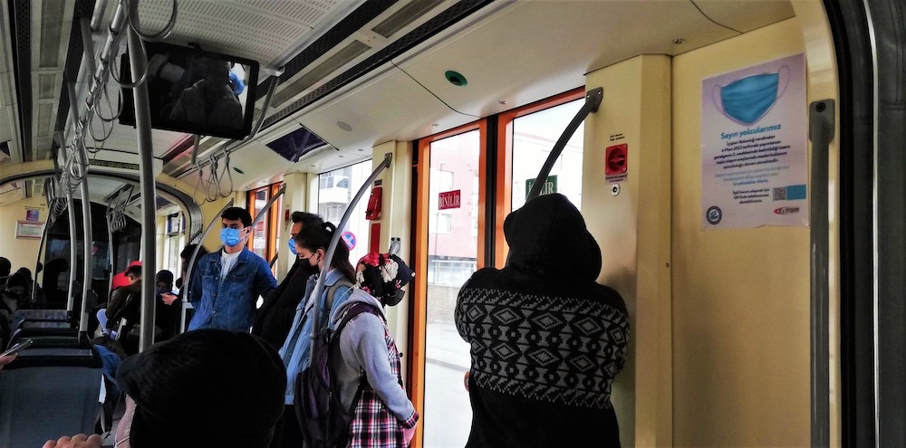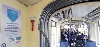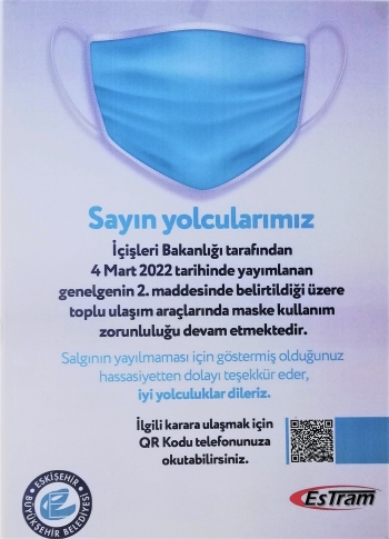 Estram görevlileri de maske kullanımının devamlılığı ile ilgili tramvaylara uyarı afişleri asarak vatandaşları uyardı. Afişte, “Sayın yolcularımız, İçişleri Bakanlığı’nın 4 Mart 2022 tarihli genelgenin 2. maddesinde belirtildiği üzere toplu taşıma araçlarında maske kullanımı zorunluluğu devam etmektedir. Salgının yayılmaması için göstermiş olduğunuz hassasiyet için teşekkür eder, iyi yolculuklar dileriz” ifadelerine yer verildi.