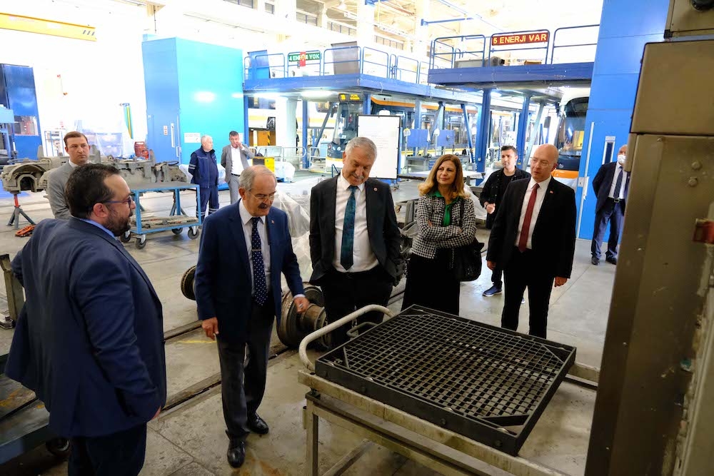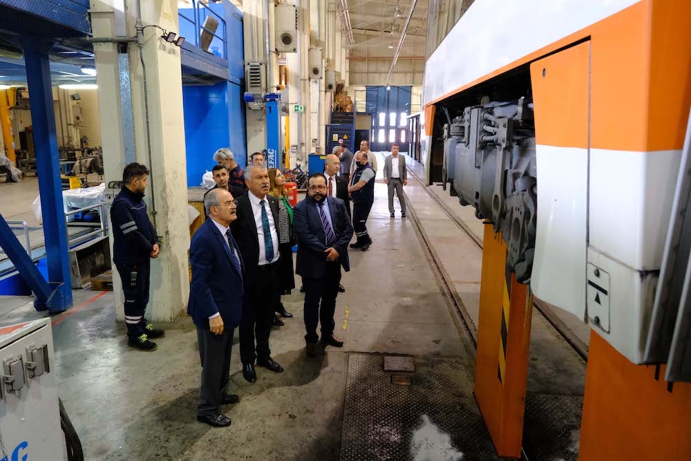 Eskişehir’in 2004 yılında başlayan hafif raylı sistem ulaşımı konusunda Karalar’a bilgi veren Başkan Büyükerşen, atölyelerde yapılan bakım, onarım çalışmalarını anlattı.