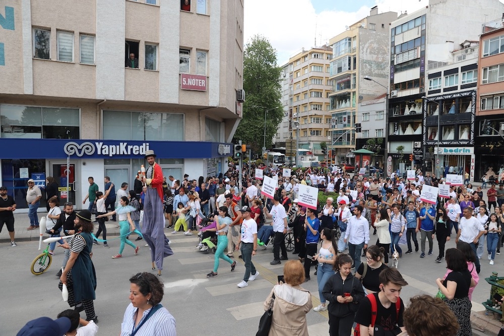 Ulus Anıtı’ndan başlayan yürüyüş, İsmet İnönü Caddesi ve Şair Fuzuli Caddesi geçilerek Adalar Porsuk Bulvarı’nda tamamlandı. Farkındalık yürüyüşü ile etkinliklerdeki şarkı ve danslara vatandaşlar da eşlik edince, renkli bir sokak dansı festivali de ortaya çıktı.