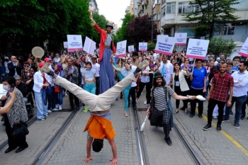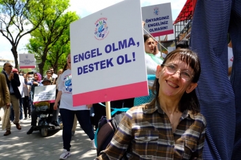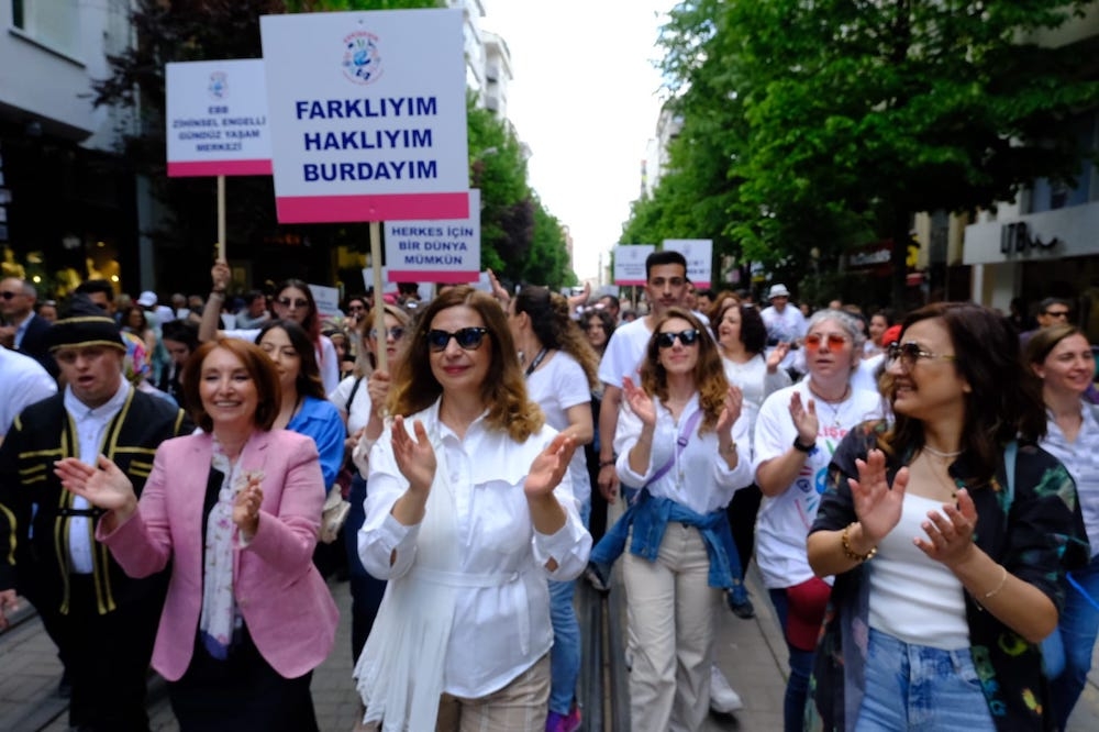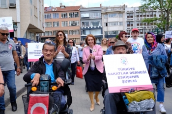 Ellerinde, “Farklıyım haklıyım buradayım, Önyargınız engel olmasın, Herkes için bir dünya mümkün, Engelli mi engellenen mi?” yazılı dövizlerle, akrobasi ve bando takımı gösterisi eşliğinde yürüyen, büyük bir katılımın olduğu yürüyüş Eskişehir’in farkını da ortaya koydu.