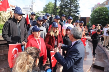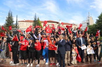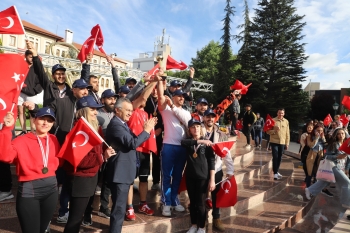 Ödül töreni sonrası sporcular ellerinde Türk bayraklarıyla marşlar söylerken, 19 Mayıs Atatürk’ü Anma Gençlik ve Spor Bayramı’nın coşkusunu yaşadı.