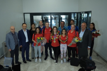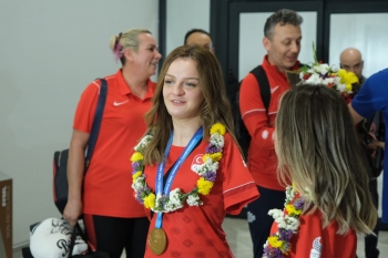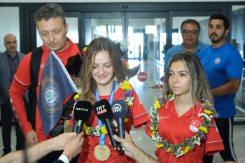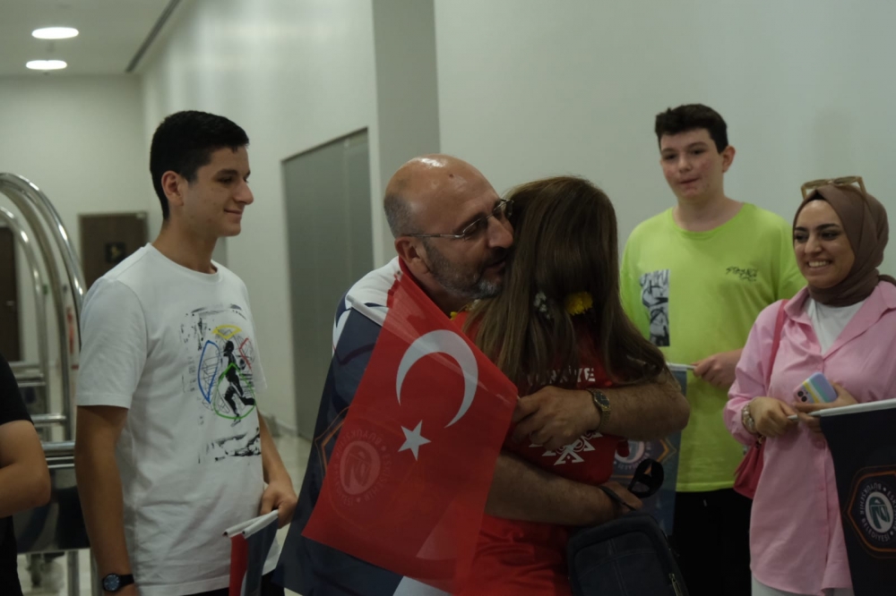 Portekiz’den Türkiye’ye dönen Sümeyye Boyacı’yı, İstanbul Havalimanı’nda Eskişehir Büyükşehir Belediyesi Gençlik ve Spor Kulübü yöneticileri, ailesi ve belediye personeli çiçeklerle karşıladı.
