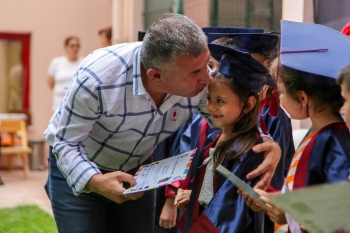 Toplam 60 çocuğun eğitim aldığı Es Çocuk Evi’nde 19 öğrenci mezun olarak ilk diplomalarını aldı. Burada yapılan törende konuşan Es Çocuk Evi Müdürü Ferhat Taşdelen, “Bugün çok mutluyuz. Büyük Önder Atatürk’e, Cumhuriyet’e bağlı nesiller yetiştirmek için çalışmalarımızı sürdürüyoruz. Burada bir de geleneğimiz var. Mezunlarımızı Ankara’ya Anıtkabir’e götürüyoruz. Bu törenden önce yine Atamıza gittik ve bugün de mezunlarımızı veriyoruz. Çocuklar sizleri buradan gönderiyoruz ama ne zaman sıkıntınız olursa belediyemiz imdadınıza yetişir bunu unutmayın” dedi.