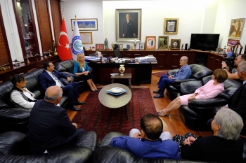 Eskişehir Büyükşehir Belediye Başkanı Prof. Dr. Yılmaz Büyükerşen, Odunpazarı Kent Konseyi’nin düzenlediği ve moderatörlüğünü CHP Adana Milletvekili Burhanettin Bulut’un yaptığı, “Kentlere Dokunan Kadınlar” adlı söyleşinin konuşmacılarını makamında ağırladı.
