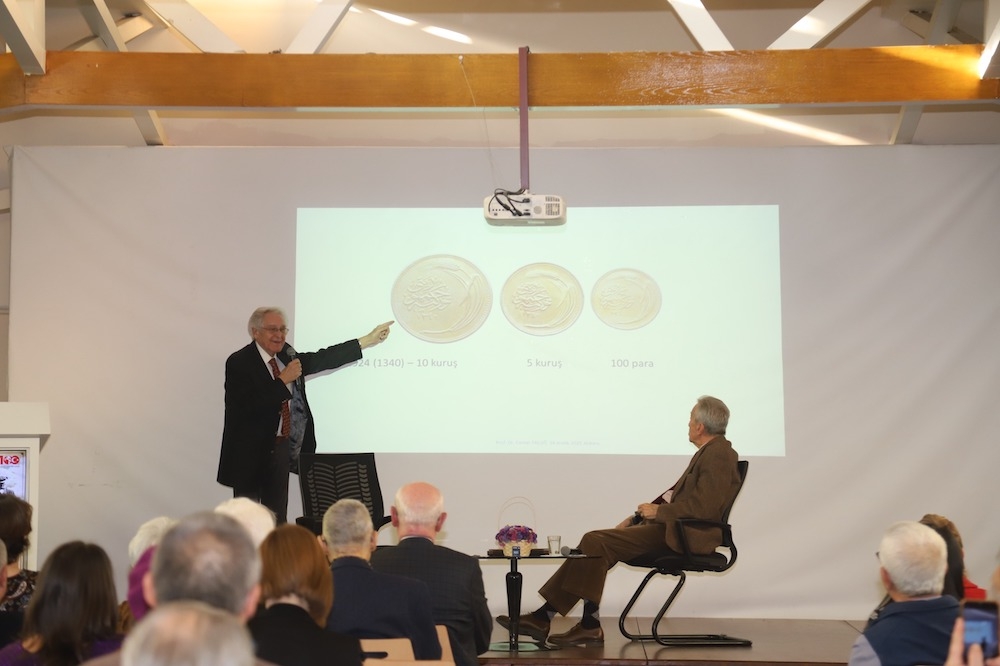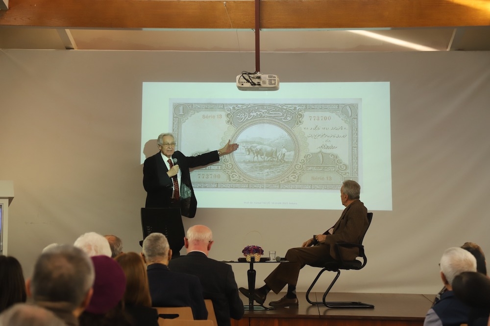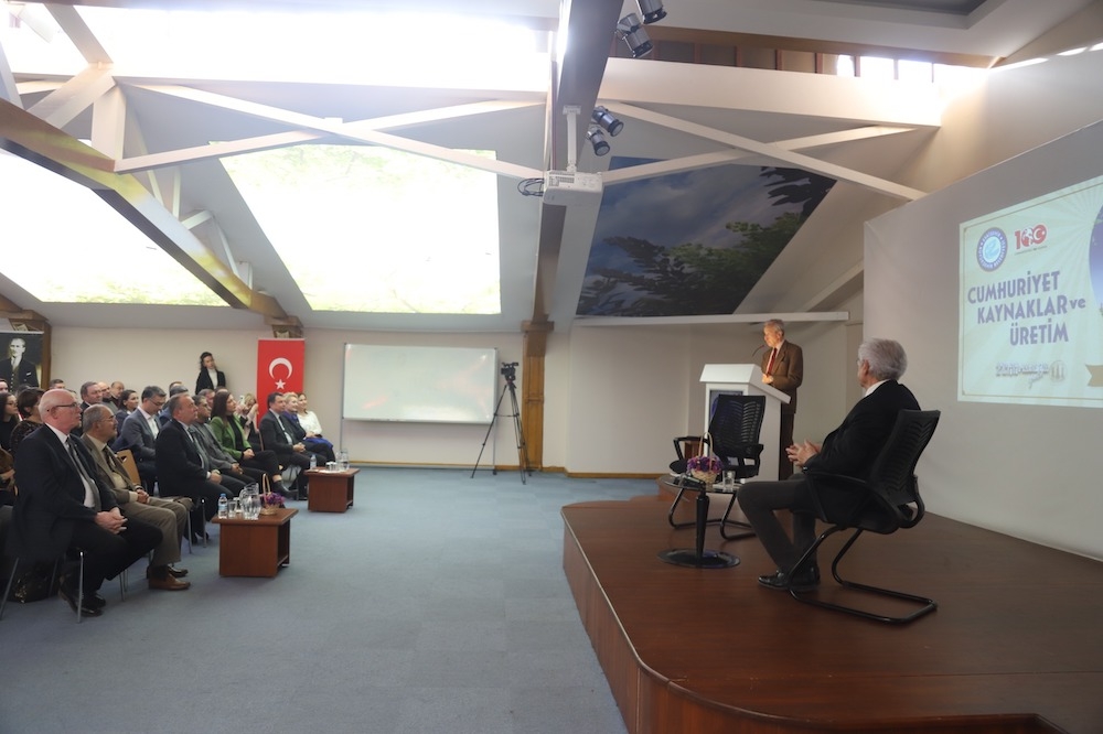 Daha sonra Prof. Dr. Cemal Taluğ ve Prof. Dr. Bilsay Kuruç, Cumhuriyet’in kuruluş felsefesi, ilk yıllarından itibaren üretime bakış ve Mustafa Kemal Atatürk’ün üretime verdiği önem başta olmak üzere birçok önemli konuyu katılımcılarla paylaştılar.