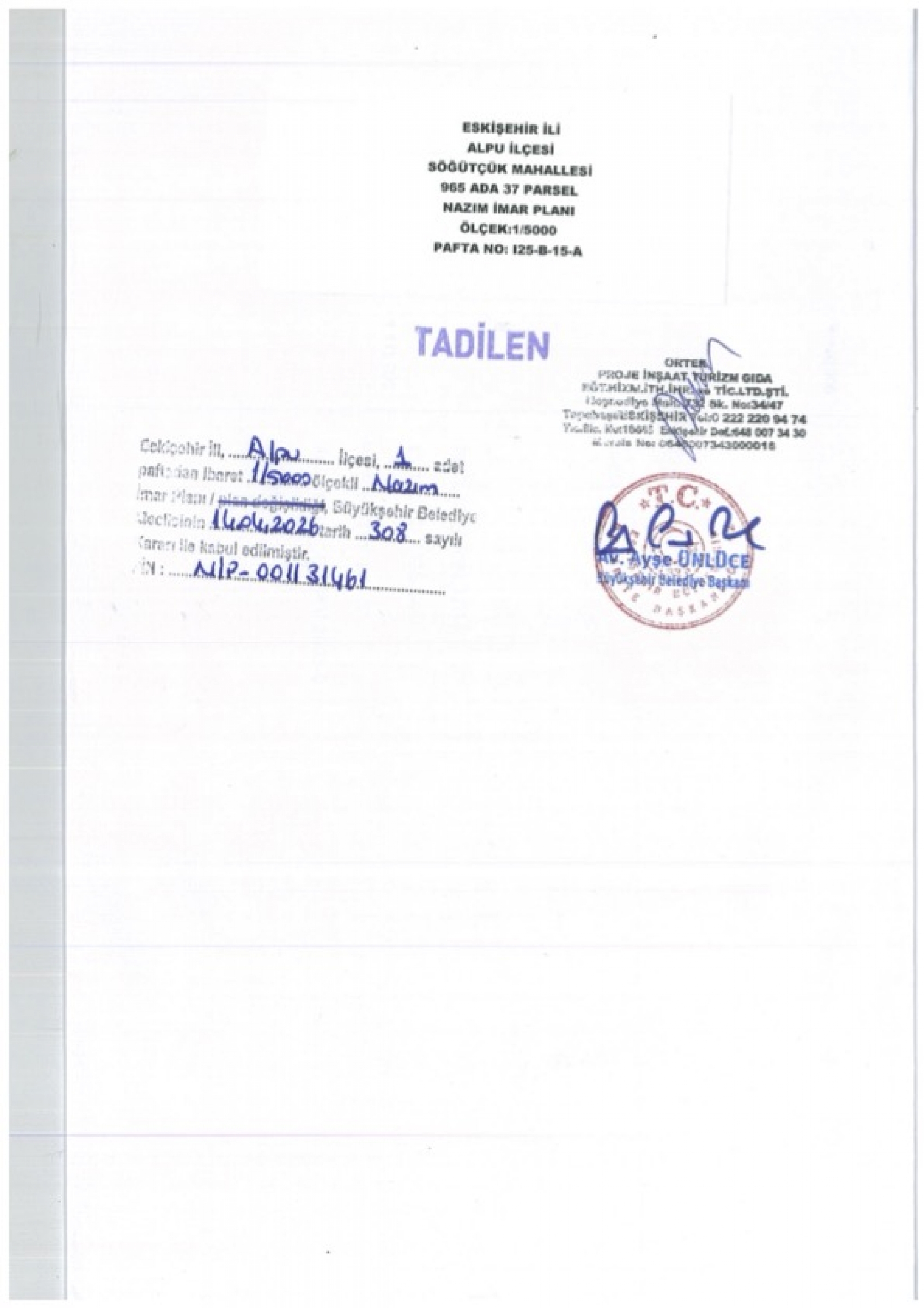 | Karar No: 308 | İlçe: Alpu | Mahalle: Söğütçük |