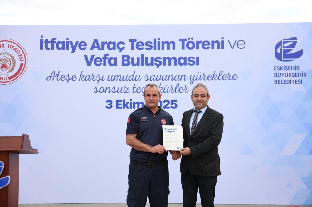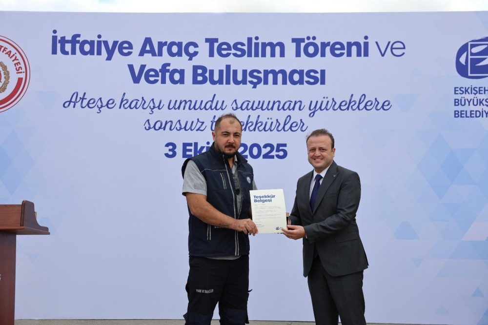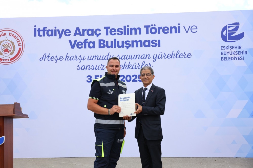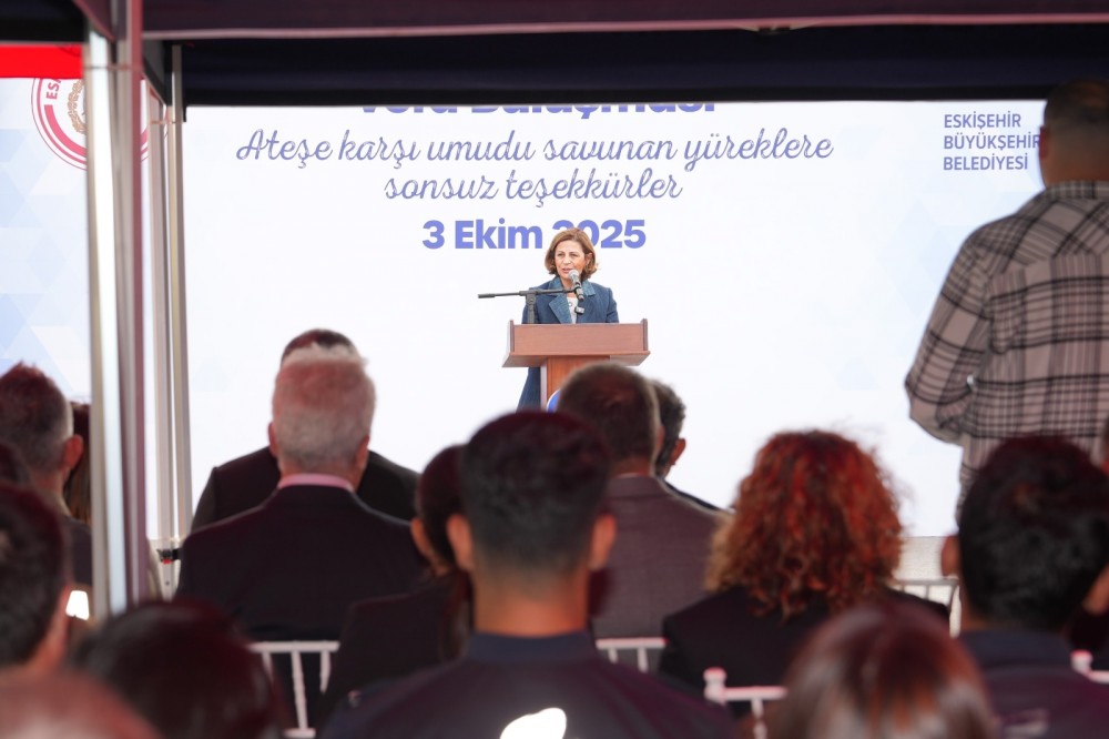 Eskişehir Büyükşehir Belediyesi, orman yangınlarında görev alan belediye personeline teşekkür belgesi verdi, yeni araçları teslim etti. Büyükşehir Belediye Başkanı Ayşe Ünlüce, “Sizler sadece şehrimizde değil, Türkiye’nin dört bir yanında büyük bir özveriyle, cansipârâne çalıştınız.” dedi.