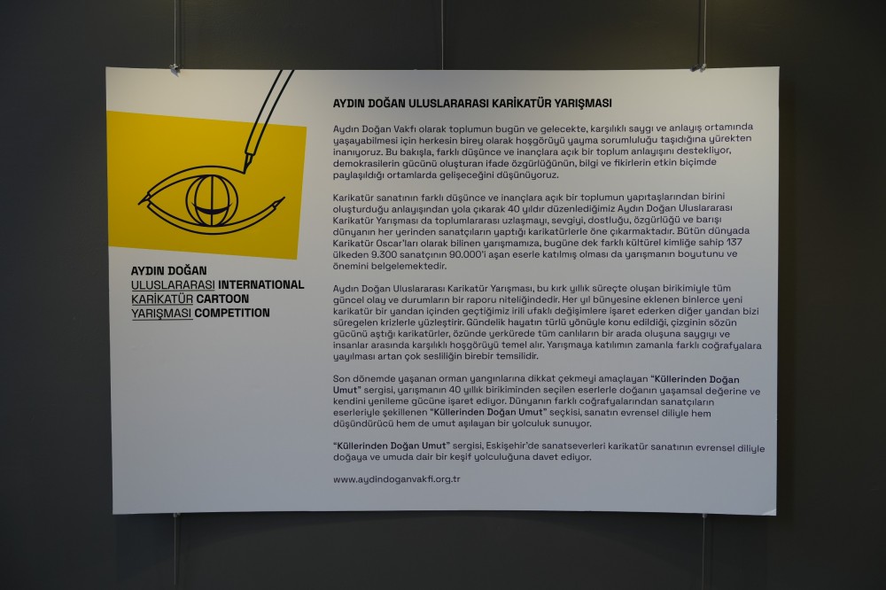 CHP Eskişehir Milletvekili Süllü ise ev sahipliğinden dolayı Büyükşehir Belediyesi’ni tebrik ettiğini söyleyerek, “Hem orman yangınları hem de insanoğlunun faaliyetleri nedeniyle doğaya verdiği zarar burada karikatürize ediliyor. Aydın Doğan Vakfı'na teşekkür ediyorum.” diye konuştu.