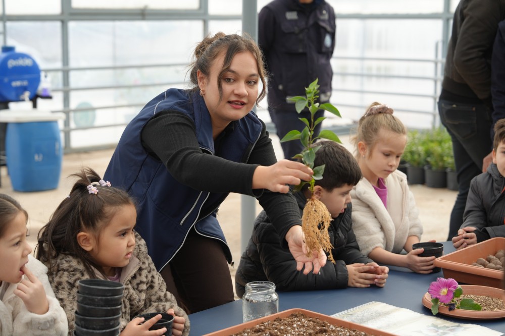 Park ve Bahçeler Dairesi Başkanlığı seralarında gerçekleştirilen etkinliklerde çocuklar, görevliler eşliğinde çiçek dikimi yaptı. Ardından Yerel Tohum Merkezi’nde teknik personelin anlatımıyla tohum çeşitleri, ekim ve sulama yöntemleri ile fidelerin toprakla buluşturulma aşamaları hakkında bilgilendirildiler. Tohum üretim alanlarını inceleyen minikler, tohum bankasını da tanıma fırsatı buldu.