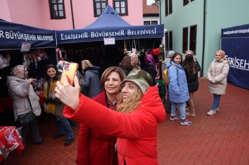 Eskişehir Büyükşehir Belediyesi Sanat Meslek Eğitim Kursları (ESMEK) tarafından Tarihi Odunpazarı Bölgesinde yeni yıl hediyelik eşya pazarı açıldı. Yılbaşına özel hünerli ellerin tasarladığı ürünlerin yer aldığı pazarı gezen Büyükşehir Belediye Başkanı Ayşe Ünlüce, “Büyük emeklerle, birbirinden güzel ürünler ortaya çıkaran tüm kadınları kutluyor, bereketli kazançlar diliyorum.” dedi.