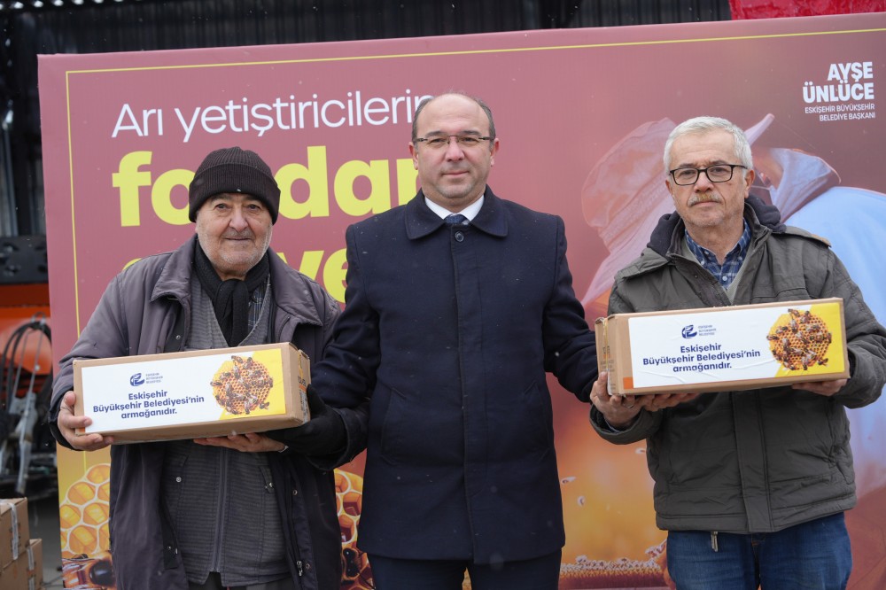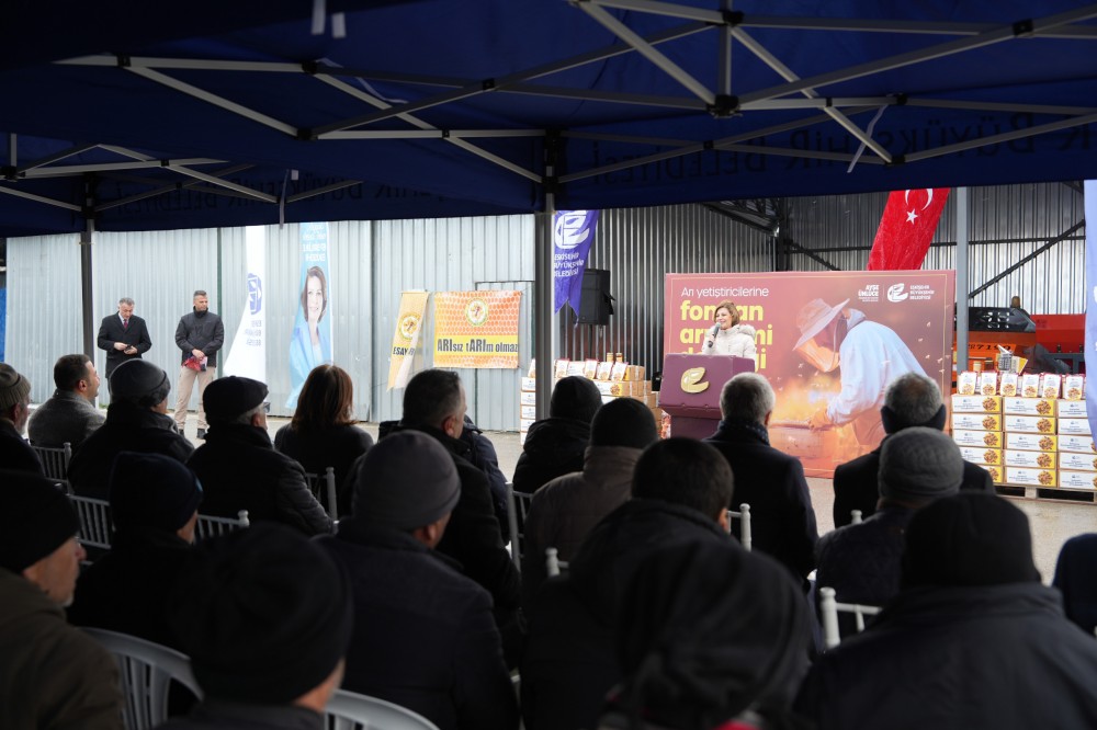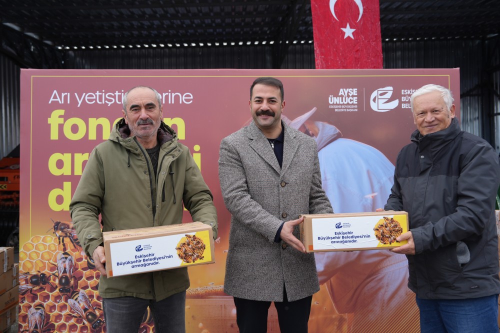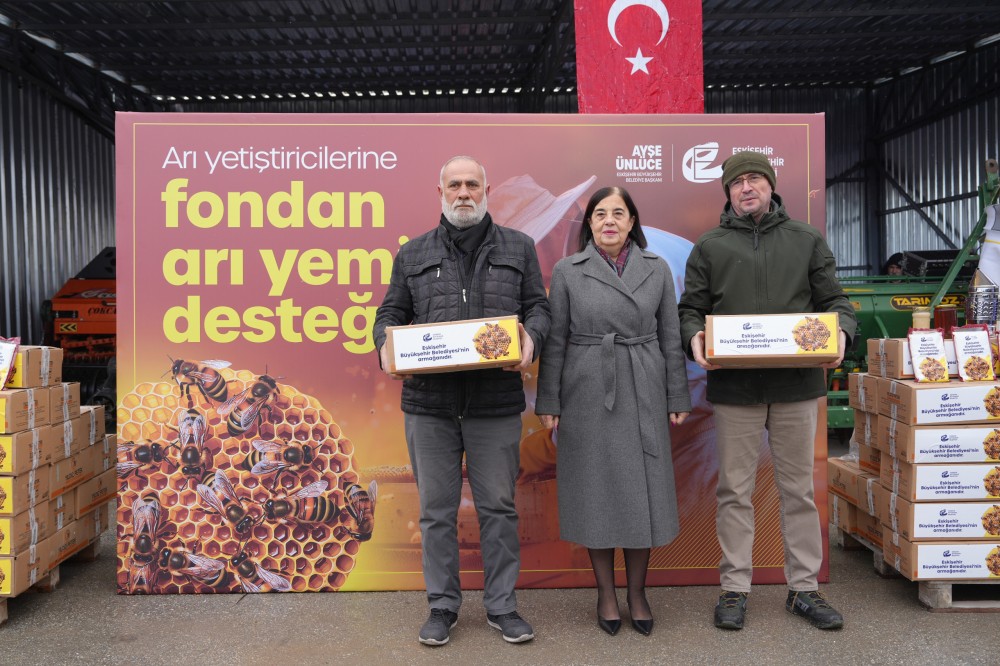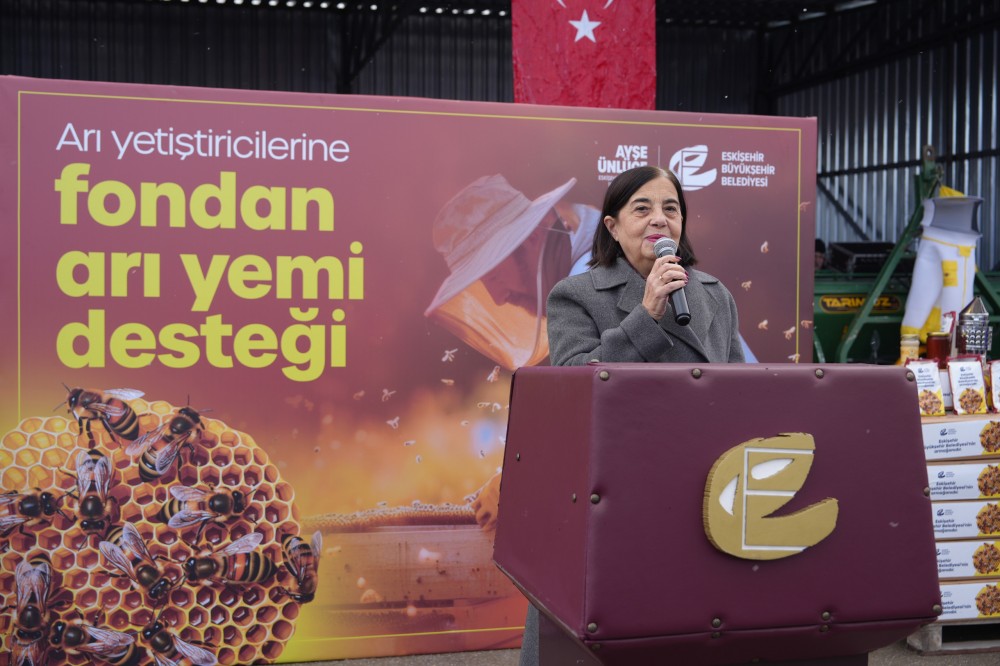 Eskişehir Büyükşehir Belediyesi, kırsal kalkınmayı desteklemek ve arıcılık faaliyetlerinin sürdürülebilirliğini güçlendirmek amacıyla il genelindeki tüm ilçelerde arı yetiştiricilerine fondan arı yemi desteği sağladı. Dağıtım töreninde konuşan Eskişehir Büyükşehir Belediye Başkanı Ayşe Ünlüce, “Çiftçiye yönelik desteklerimiz artarak devam edecek. Siz yeter ki üretmeye devam edin.” ifadelerini kullandı.
