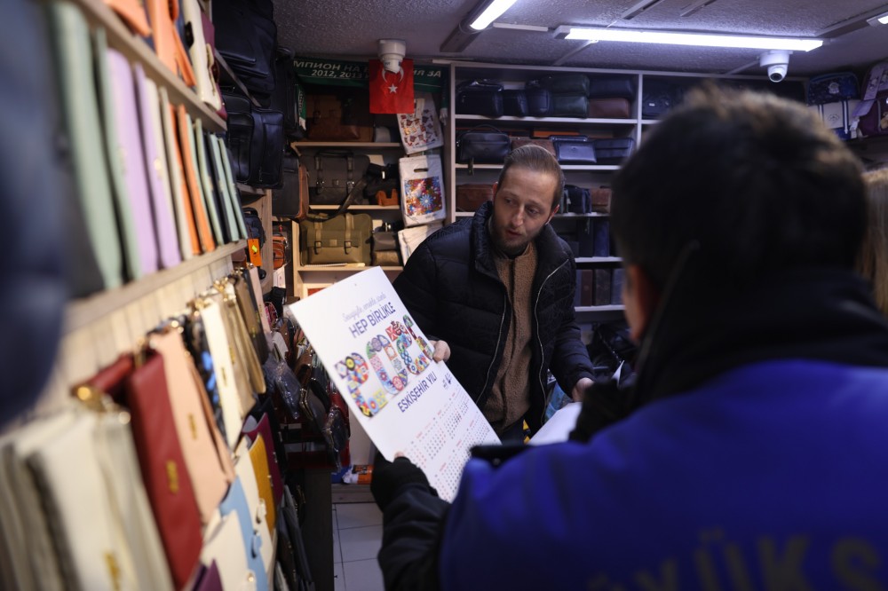 Ayrıca Büyükşehir Belediyesi Basın Yayın ve Halkla İlişkiler Dairesi Başkanlığı ile Zabıta ekipleri, Hamamyolu Caddesi’nde esnaf ziyaretleri gerçekleştirdi. Yeni yılın coşkusunu esnafla paylaşan ekipler, 2026 yılına özel olarak hazırlanan takvimleri ve Eskişehir Büyükşehir Belediye Başkanı Ayşe Ünlüce’nin yeni yıl tebrik mektubunu hediye ederken, tasarıma ait stickerları da esnafa ulaştırdı.