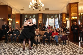 Açılış konuşmasının ardından kısa bir tango gösterisinin ardından söyleşiye geçildi. Arkeolog Sergen Çirkin’in moderatörlüğünde gerçekleştirilen söyleşinin konuşmacıları Prof. Dr. Kemal Yakut ve Doç. Dr. Duygu Yetgin Akgün, Porsuk Otel’in yalnızca bir konaklama yapısı olmanın ötesinde, kentin sosyal yaşamında üstlendiği rolü ve kültürel miras niteliğini arşiv belgeleri ve tarihsel veriler eşliğinde aktardı.