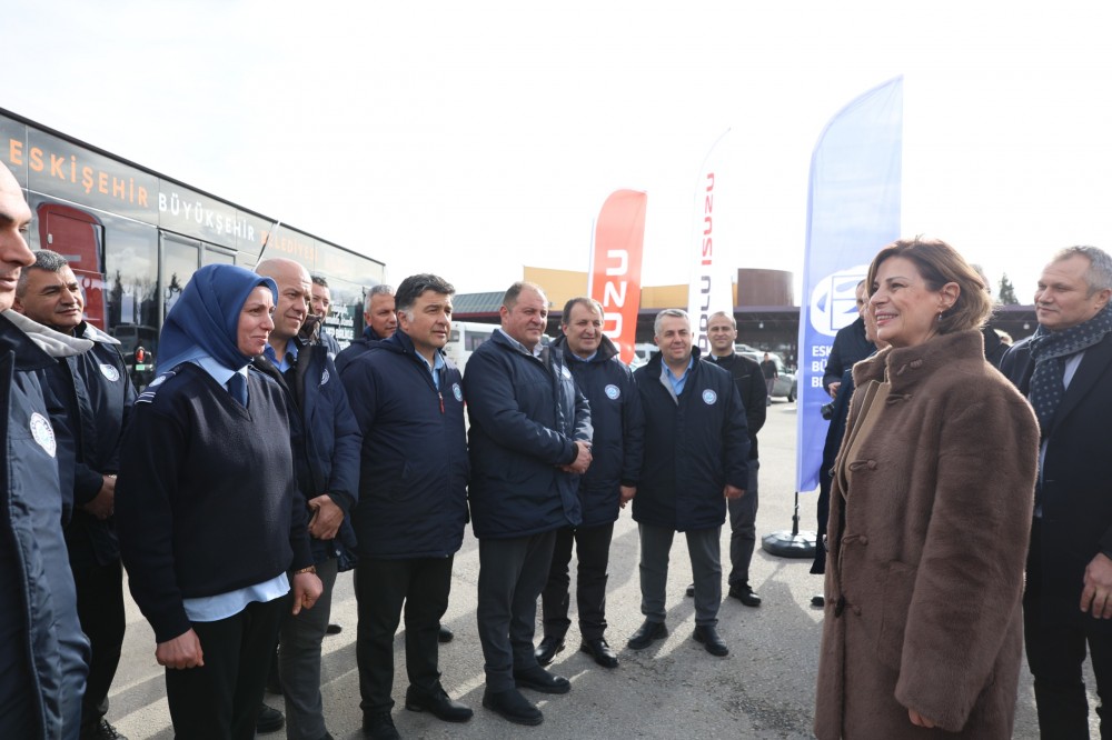 Temin edilen 25 yeni otobüs için Eskişehir Büyükşehir Belediyesi Şehirlerarası Otobüs Terminali’nde teslim töreni düzenlendi. Törene Eskişehir Büyükşehir Belediye Başkanı Ayşe Ünlüce’nin yanı sıra CHP İl Başkanı Talat Yalaz, CHP Eskişehir Milletvekili Jale Nur Süllü, Anadolu Isuzu Otobüs Satış Müdürü Murat Küçük, ilçe belediye başkanları, meclis üyeleri, belediye bürokratları, belediye personeli, şoförler ve vatandaşlar katıldı.