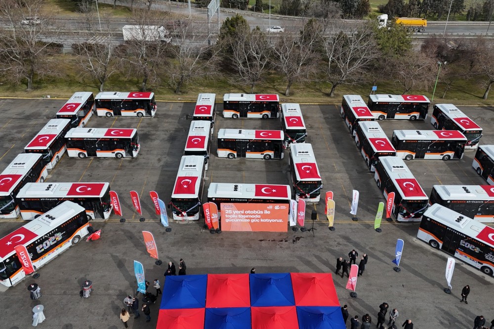 Eskişehir Büyükşehir Belediyesi, kendi öz kaynaklarıyla kent içi ulaşımı daha güvenli, konforlu ve çevreci hale getirmek amacıyla filosuna 25 yeni otobüs daha kattı. Otobüslerin Eskişehirlilere hayırlı uğurlu olmasını dileyen Eskişehir Büyükşehir Belediye Başkanı Ayşe Ünlüce, “2026 Eskişehir yılında hep beraber Eskişehir için çalışıp çıtayı yükseltmeye devam edeceğiz. Bu şehri birlikte var ettik, birlikte daha da güzel yapacağız.” dedi.