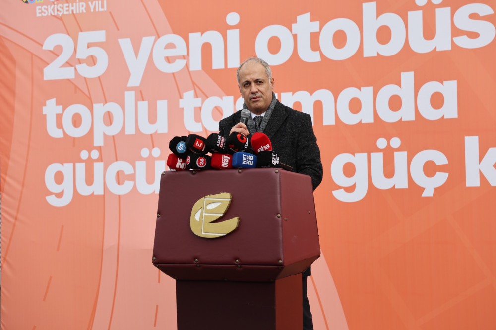 “Bugün burada önemli bir hizmeti Eskişehir halkıyla buluşturmak üzere toplanmış bulunuyoruz. Eskişehir Büyükşehir Belediyesi laf değil, hizmet üretiyor; proje onayı değil, bizzat projeleri hayata geçiriyor. Eskişehir'in gece gündüz demeden, kar kış demeden halkına hizmet için canla başla çalışan bir belediye başkanı var. Bugün de Ayşe Başkanımız 25 yeni halk otobüsünü Eskişehir halkıyla buluşturuyor. Bu duygu ve düşüncelerle, bu hizmette emeği geçen herkese yürekten teşekkür ediyorum. Bu tür hizmetlerin devam edecek olmasından duyduğum mutluluğu dile getirerek hepinizi bir kez daha saygı ve sevgiyle selamlıyorum.”