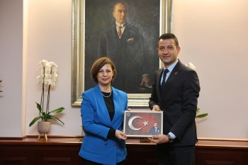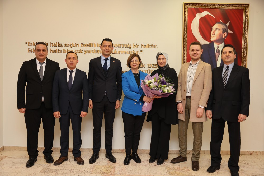 Türk Ulaşım-Sen Eskişehir Şube Başkanı Ümit Biçer ve beraberindeki yönetim kurulu üyeleri, Eskişehir Büyükşehir Belediye Başkanı Ayşe Ünlüce’yi makamında ziyaret etti. Gerçekleşen ziyarette, Kasım 2025’te “Demiryollarının Babası” olarak anılan, Cumhuriyet tarihimizin öncü isimlerinden Behiç Erkin’in adının ESTRAM A.Ş. yerleşkesine verilmesi dolayısıyla Başkan Ünlüce’ye teşekkürlerini ilettiler.