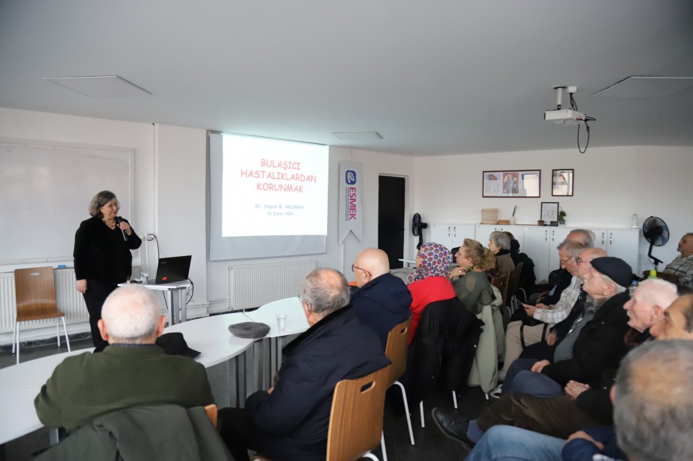 Atölyeler kapsamında, alanında uzman bir ismin katılımıyla önemli bir eğitim oturumu gerçekleştirildi. Eskişehir Tabipler Odası Başkanı Nazan Aksaray, “Bulaşıcı Hastalıklar ve Solunum Enfeksiyonlarından Korunma” başlıklı sunumuyla katılımcılarla bir araya gelerek, özellikle sağlıklı yaş alma sürecinde korunmanın ve farkındalığın önemine dikkat çekti.