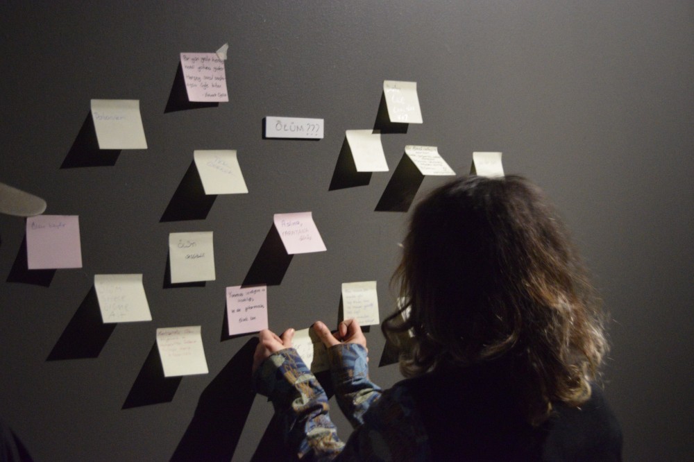 Işığın gölgeyle kurduğu ilişki ve kelimelerin zamana direnen gücü sayesinde ölümün soğuk yüzü yeniden yorumlanıyor; karanlığın içinden süzülen bir sükûnet hissi mekâna yayılıyor. Fotoğraf ve metin tekniklerinin iç içe geçtiği sergi, duyusal bir deneyim sunarak izleyiciyi atmosferin tam merkezine davet ediyor.