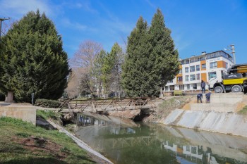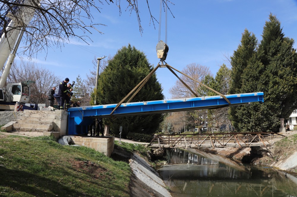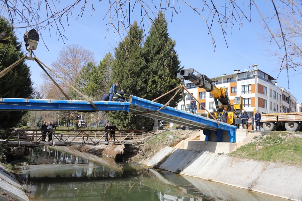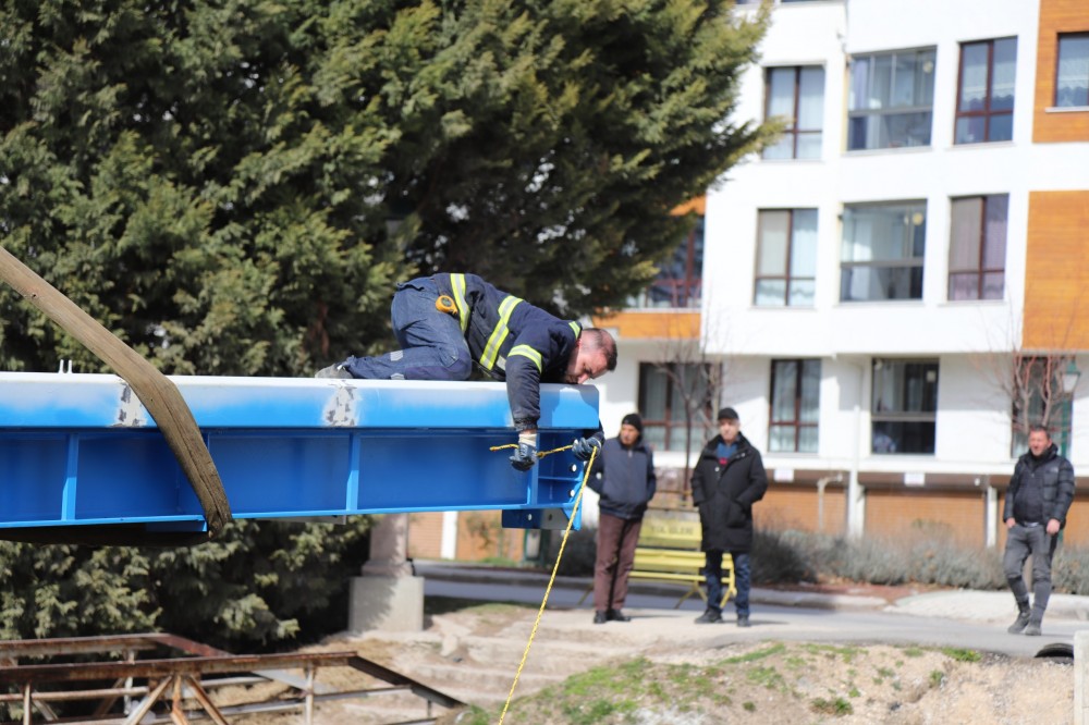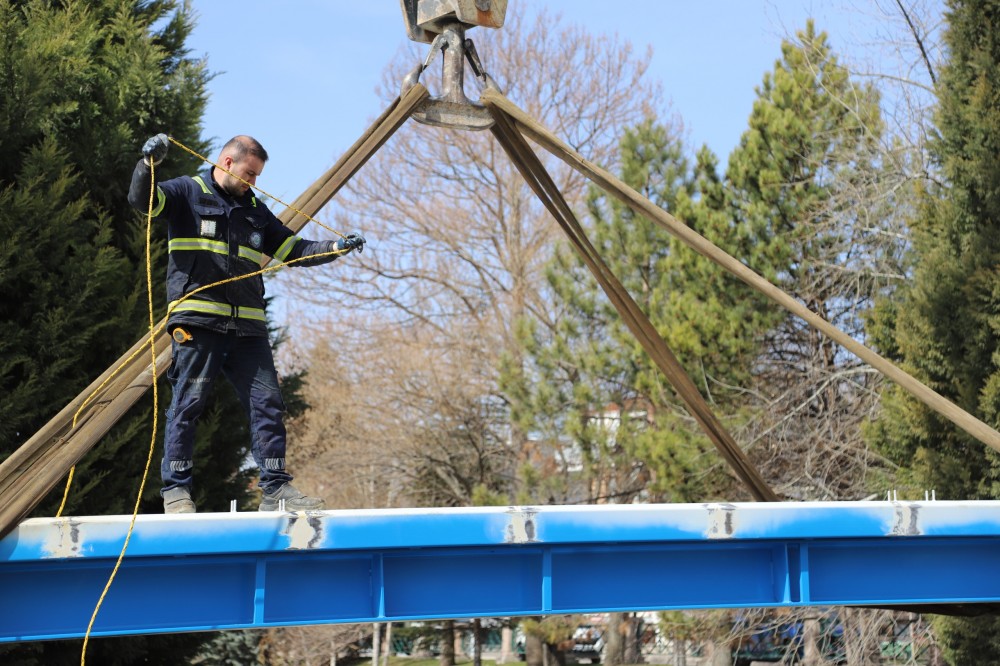 Büyükşehir Belediyesi Fen İşleri Dairesi Başkanlığı ile Park ve Bahçeler Dairesi Başkanlığı ekipleri, geçtiğimiz yıl hizmete açılan ve kısa sürede Eskişehirlilerin uğrak noktalarından biri haline gelen İskele 26’ya giden güzergâhta bulunan mevcut köprünün dar olması ve bölgedeki yoğun yaya trafiğini karşılayamaması nedeniyle yerine daha geniş ve yapısal olarak daha dayanıklı yeni bir köprü inşa ediliyor.