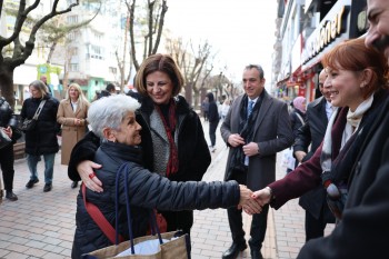 Saha ziyaretlerini sürdüren Eskişehir Büyükşehir Belediye Başkanı Ayşe Ünlüce, kente gelen Cumhuriyet Halk Partisi Ekonomi Politikalarından Sorumlu Genel Başkan Yardımcısı Güldem Atabay ile birlikte Hamamyolu Caddesi’nde vatandaşlarla bir araya geldi.