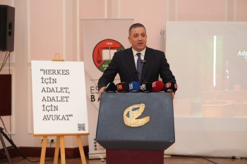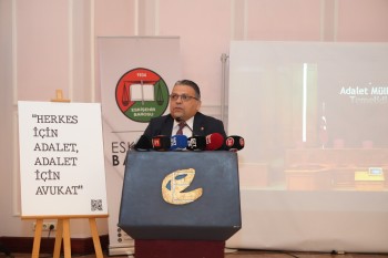 Türkiye Barolar Birliği Başkanı Erinç Sağkan ise konuşmasında adaletin toplumun en temel ihtiyacı olduğuna dikkat çekerek, Türkiye’de son dönemde yaşanan hukuki tartışmalara değindi. Anayasa Mahkemesi ve Avrupa İnsan Hakları Mahkemesi kararlarının uygulanmasına yönelik sorunlara işaret eden Sağkan, ifade özgürlüğü ve kişi güvenliği konularında yaşanan sıkıntıların adalet ihtiyacını daha da görünür kıldığını söyledi. Bu süreçte avukatların ve savunma makamının kritik bir rol üstlendiğini belirten Sağkan, Eskişehir Barosu’nun bu alandaki mücadelesine de özel olarak vurgu yaparak, “Bu ortamda sizlerle birlikte bulunmamıza vesile oldukları için hem Büyükşehir Belediye Başkanımıza hem de Baro Başkanımıza şükranlarımı sunarak başlamak istiyorum. 2026 yılının Eskişehir yılı olarak ilanı simgesel olarak çok anlamlı olmakla birlikte; 5 meydan muharebesinin 3'ünün gerçekleştiği bu topraklar aslında hepimiz açısından her yıl, her yılın şehri olarak kabul edilen bu şehrin kadim topraklarında bulunmaktan da çok büyük onur duyduğumu ifade etmek istiyorum.” diye konuştu.