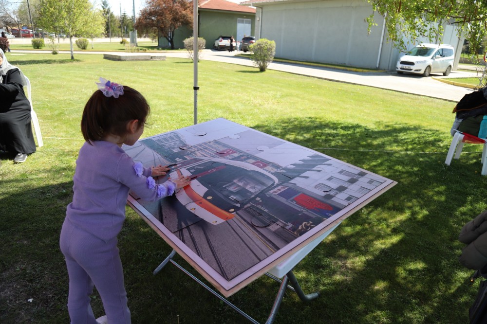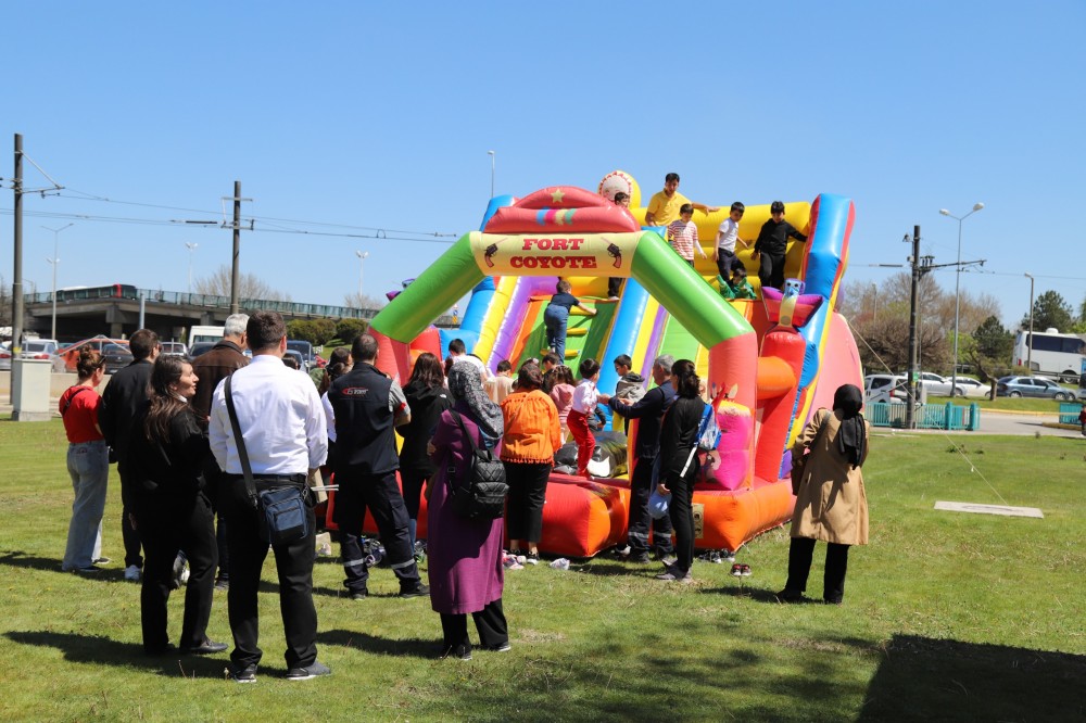 Hafta boyunca birbirinden eğlenceli ve öğretici etkinliklere ev sahipliği yapan Büyükşehir Belediyesi, hafta sonunda da minikleri yalnız bırakmadı. ESTRAM Ulaşım A.Ş. Behiç Erkin Yerleşkesi’nde kurulan renkli oyun parkuru, çocukların kahkahalarıyla dolup taştı. ESTRAM çalışanlarının çocukları, tramvay deneyimi yaşayarak unutamayacakları bir gün geçirdi. Boyama etkinlikleriyle de yaratıcılıklarını ortaya koyan çocuklar, bayramın tadını doyasıya çıkardı.