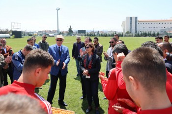 Ziyarette, Eskişehir’in tüm dinamikleriyle takımının yanında olduğu vurgulanırken, futbolculara önemli mücadele öncesinde moral verildi. Şehrin ortak değeri olan Eskişehirspor’un yeniden hak ettiği yerlere ulaşacağına olan inanç bir kez daha yinelendi.