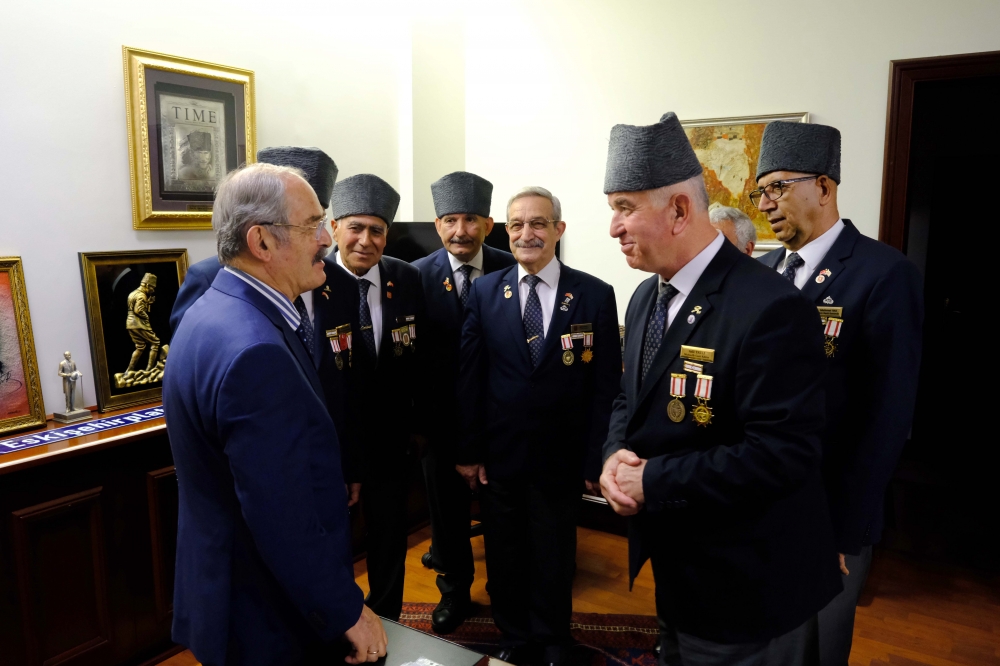 Eskişehir Büyükşehir Belediye Başkanı Prof. Dr. Yılmaz Büyükerşen, Türkiye Muharip Gaziler Derneği Eskişehir Şubesi Başkanı Ekrem Dumlu ve İzmir Şubesi üyesi gazileri makamında ağırladı.