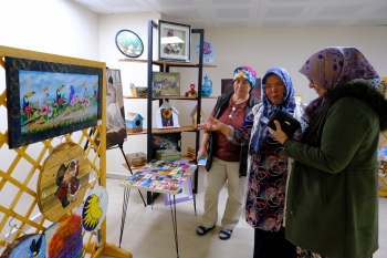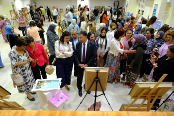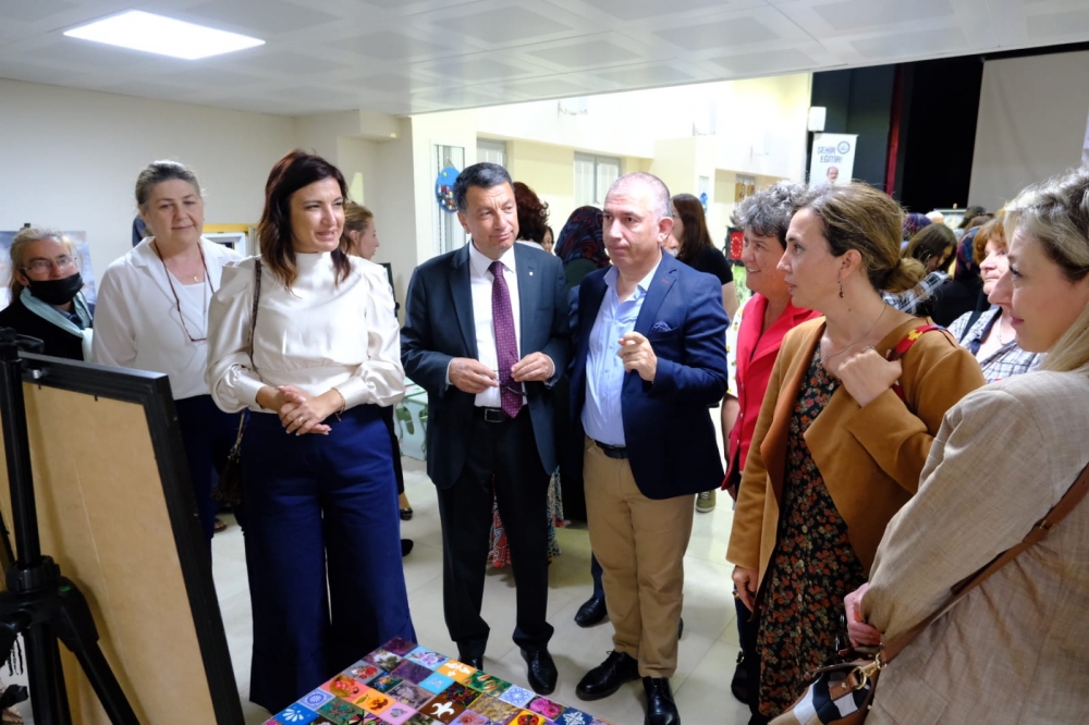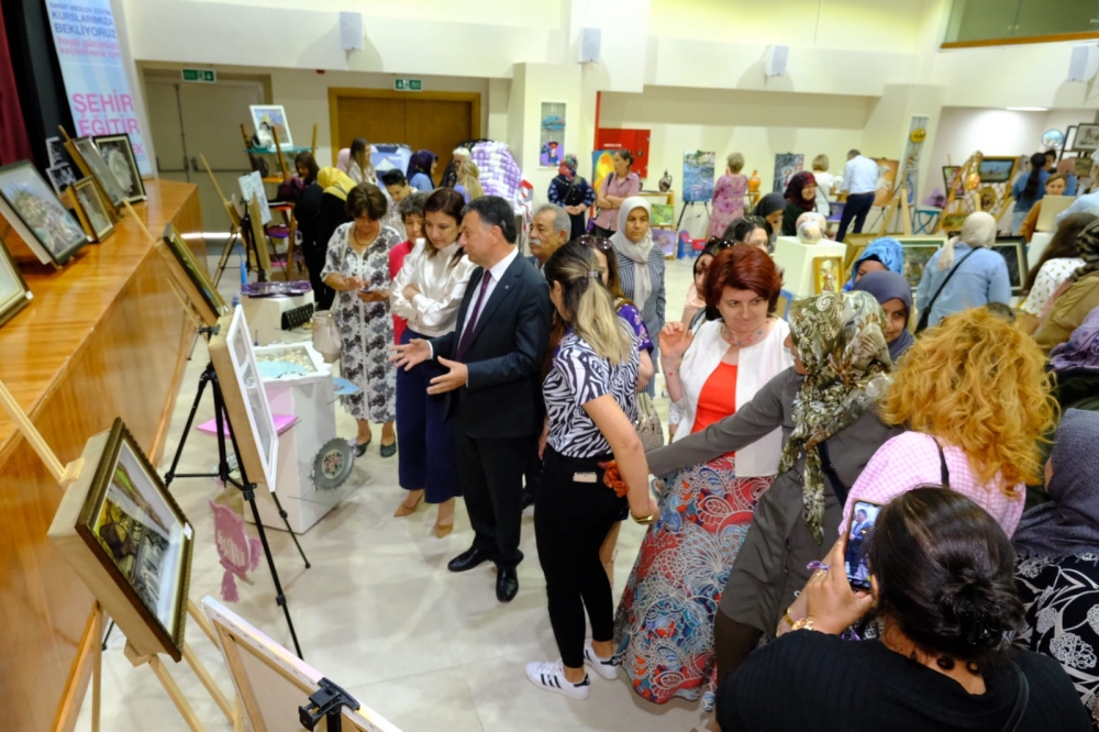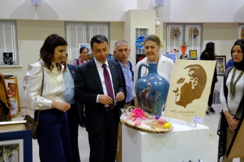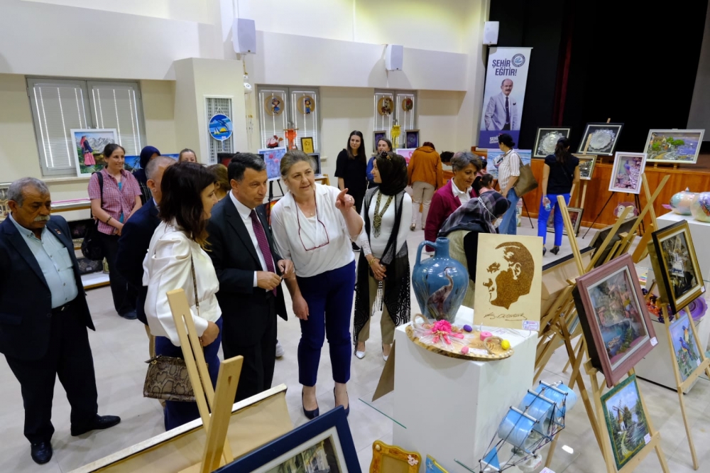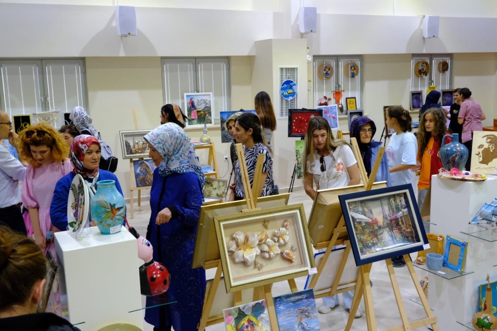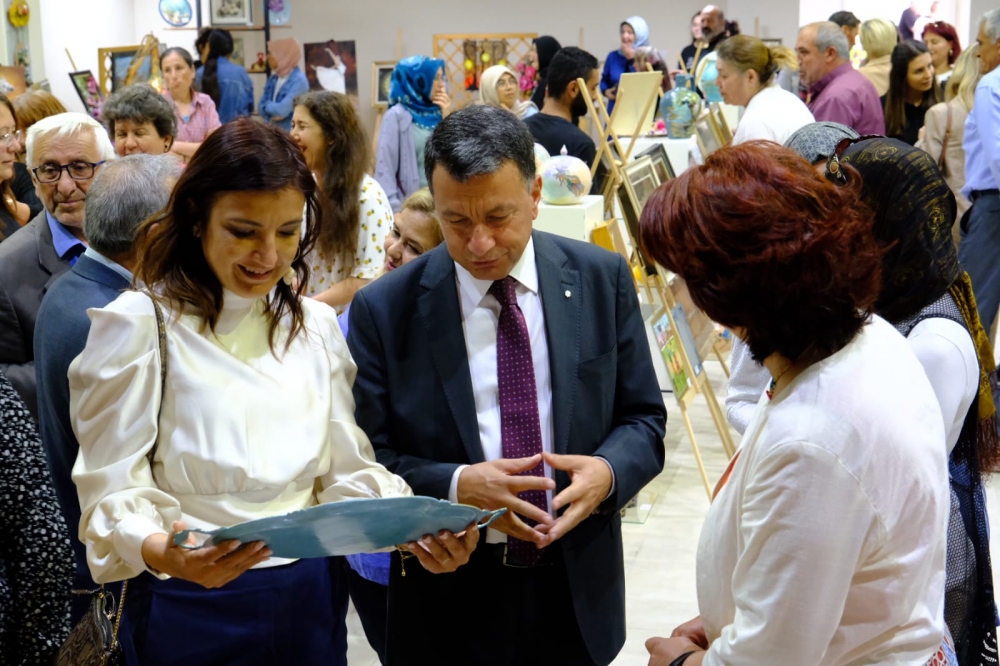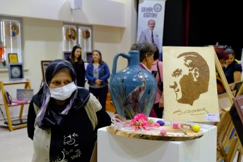 Eskişehir Büyükşehir Belediyesi Çifteler Otogar Hizmet Binası’nda açılan sergide 40 kursiyerin Ahşap Boyama, Takı Tasarımı, Yağlı Boya Resim, Filografi, Nakış Teknikleri, Örgü, Yamalı Bohça gibi farklı branşlarda 350’den fazla çalışması sergilendi. 27 Haziran’a kadar ziyaret edilebilecek olan Yıl Sonu El Sanatları Sergisi’nin açılışına Çiftelerli vatandaşlarımızın yanı sıra Eskişehir Büyükşehir Belediyesi Başkan Vekili Hasan Ünal, Genel Sekreter Yardımcısı Senem Ekinci ve belediye bürokratları katıldı. Kursiyerleri çalışmalarından dolayı tebrik eden Hasan Ünal, “Bugün burada Çifteler Eğitim Merkezimizden eğitim alan kursiyerlerimizin birbirinden değerli el emeği çalışmalarını görmekten büyük mutluluk duyduk. Çiftelerli kadınlarımız sergilenen ürünlerinin satışı ile ev ekonomilerine de katkı sağlayacak. Çalışmalar için emek veren tüm eğitmenlerimize de teşekkür ediyorum” dedi.