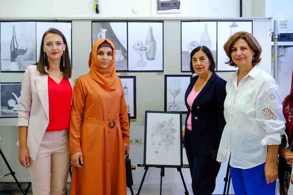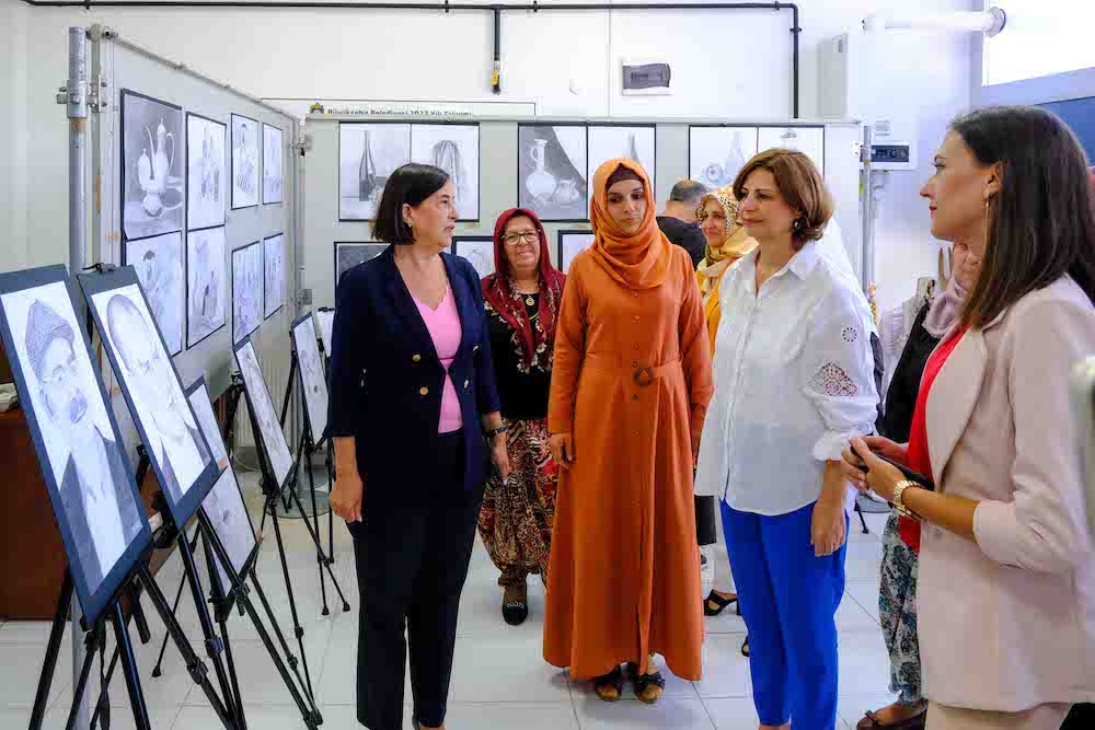 Konuşmalar sonrası sergi açılışı yapıldı. Sergi gezilirken kursiyerlerden Emine Caner, Milletvekili Jale Nur Süllü ve Büyükşehir Belediyesi Genel Sekreteri Ayşe Ünlüce’ye karakalem portre resimlerini hediye etti. Ayrıca kursiyerlerden Şerife Uygun da Başkan Yılmaz Büyükerşen’in karakalem portresini yaparak sergide izlenime sundu.