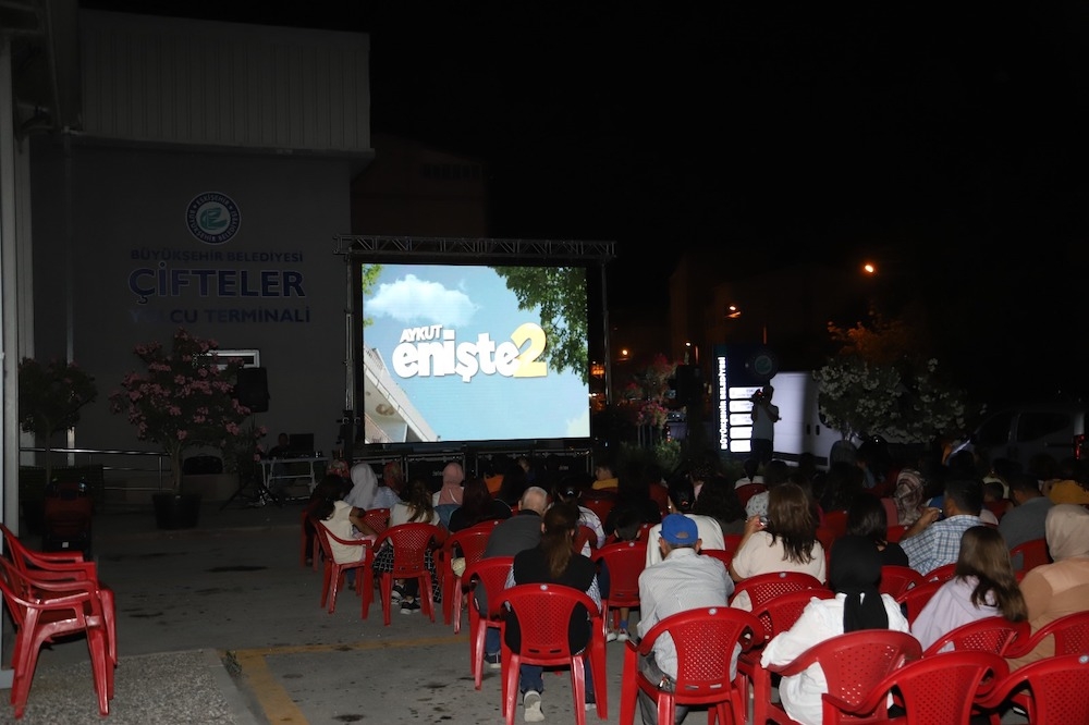 Büyükşehir Belediyesi, gelenekselleştirdiği “Açık Hava Sinema Geceleri” ile sinema salonlarının bulunmadığı 12 kırsal ilçede film gösterimleri gerçekleştirmeye devam ediyor. "Aykut Enişte 2" adlı filmin ilçe meydanlarında vatandaşlarla buluşturulduğu etkinliğin gösterimi Günyüzü, Mihalıççık, Alpu, İnönü, Seyitgazi, Beylikova’dan sonra Çifteler ve Mahmudiye ilçelerinde gerçekleştirildi.