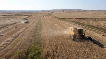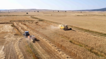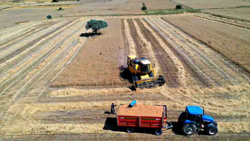 Eskişehir Büyükşehir Belediyesi, artan maliyetler nedeniyle üretemez hale gelen küçük ölçekli çiftçilerin 50 dekarlık arazisini hasat etmeye devam ediyor.