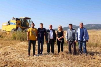 Büyükşehir Belediyesi Tarımsal Hizmetler Dairesi Başkanı Sibel Benek, Han Belediye Başkanı Erdal Şanlı ve belediye yetkililerinin de katıldığı Han ilçesindeki hasatta, Eskişehir Büyükşehir Belediyesi’ne başvuru yapan 72 çiftçinin 1014 dekarlık ekili arazisi hasat edildi.