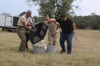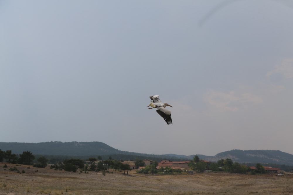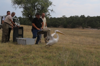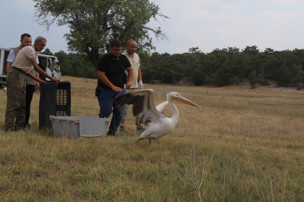 Pelikan ve şahin veterinerler eşliğinde götürüldükleri Porsuk Barajı sahasında teker teker doğal ortama salınırken kuşlar tekrar özgürlüğe kanat çırptılar.