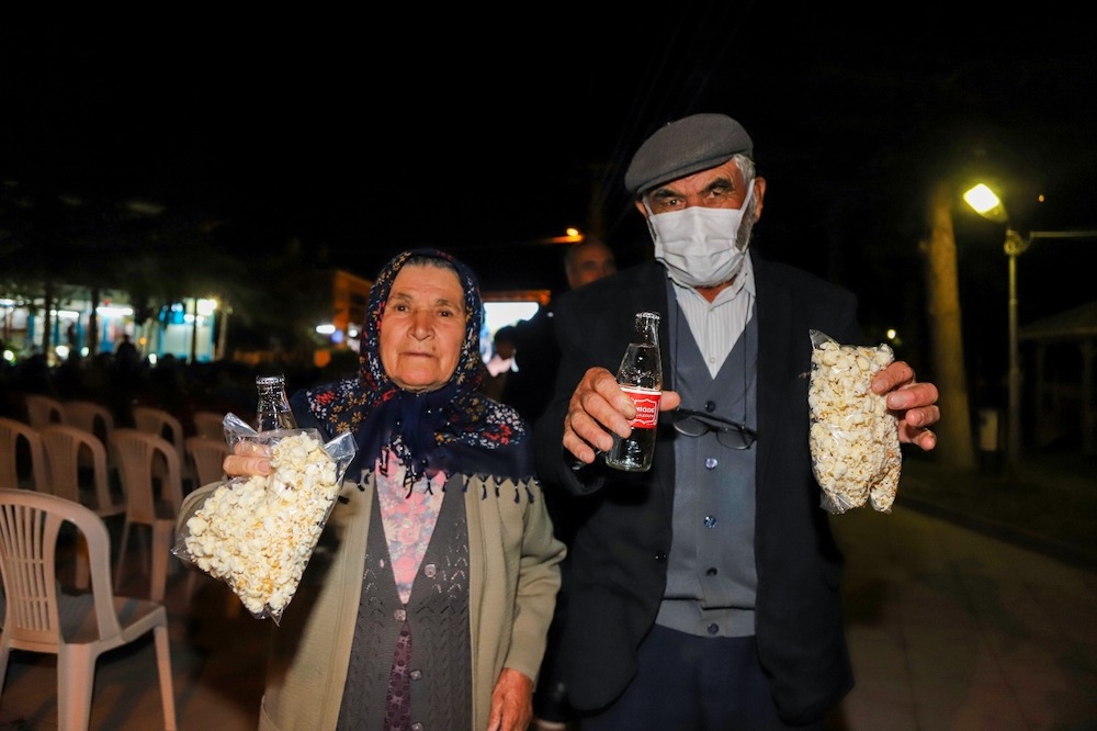 Han Cumhuriyet Meydanı’nda bir araya gelen ilçe sakinleri hep birlikte sinema keyfi yaşadı. 7’den 70’e her yaştan izleyicinin buluştuğu etkinlikte Büyükşehir Belediyesi görevlileri tarafından izleyicilere gazoz ve mısır ücretsiz olarak ikram edildi.