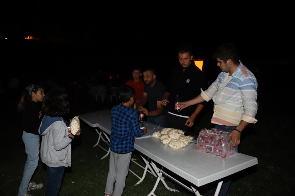 Sivrihisar’da ilçe sakinleri hep birlikte sinema keyfi yaşarken, etkinlikte Büyükşehir Belediyesi görevlileri tarafından izleyicilere gazoz ve mısır ücretsiz olarak ikram edildi.