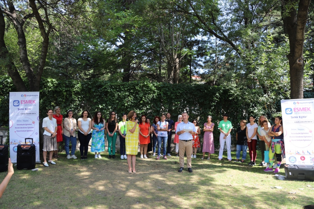 ESMEK Yaz Okulları’ndan mezun olan öğrenciler ve kurs eğitmenlerine, katılım sertifikaları verildi. Meslek Edindirme ve Eğitim Merkezi önünde gerçekleşen törene Büyükşehir Belediyesi Genel Sekreteri Ayşe Ünlüce, Sosyal Hizmetler Dairesi Başkanı Hale Kargın, belediye görevlileri, eğitmenler, çocuklar ve aileleri katıldı.