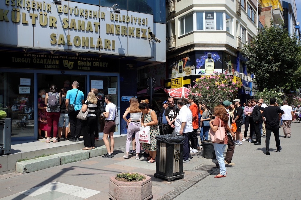 Eskişehir’in kurtuluş gününe özel ücretsiz olarak gerçekleştirilecek olan konsere davetiyelerden almak için kuyruğa giren vatandaşlar yoğunluk oluştururken, yoğunluk gün boyu devam etti.