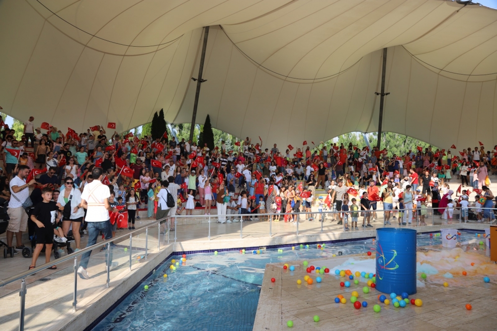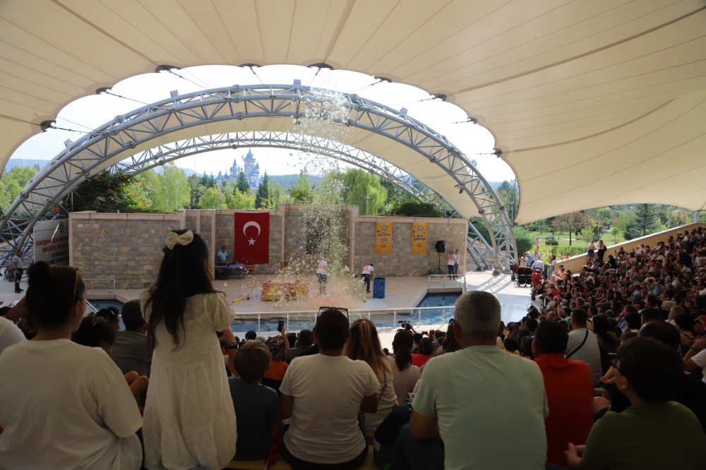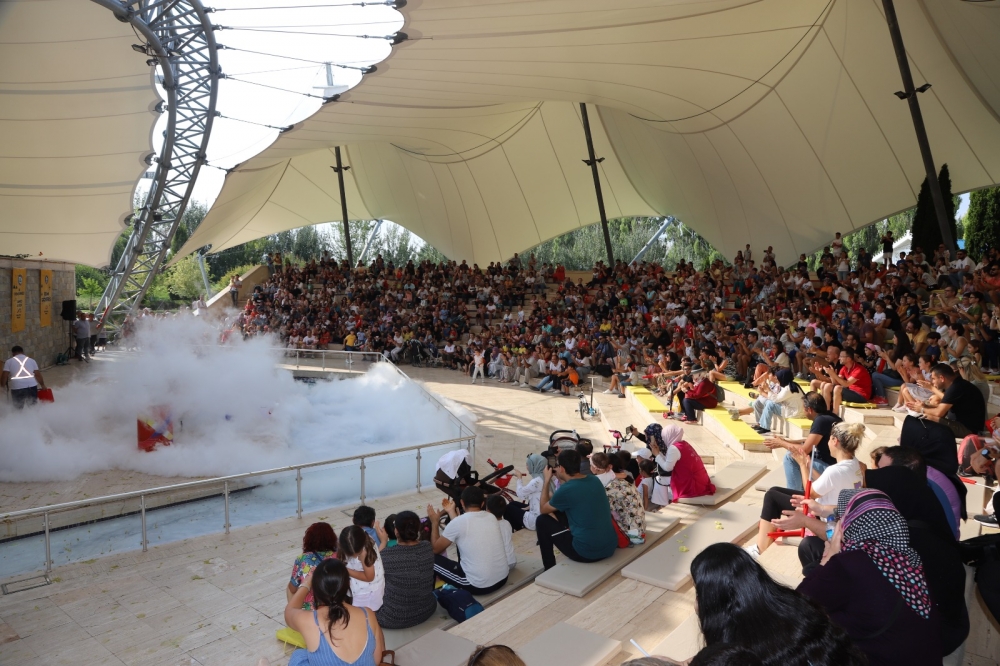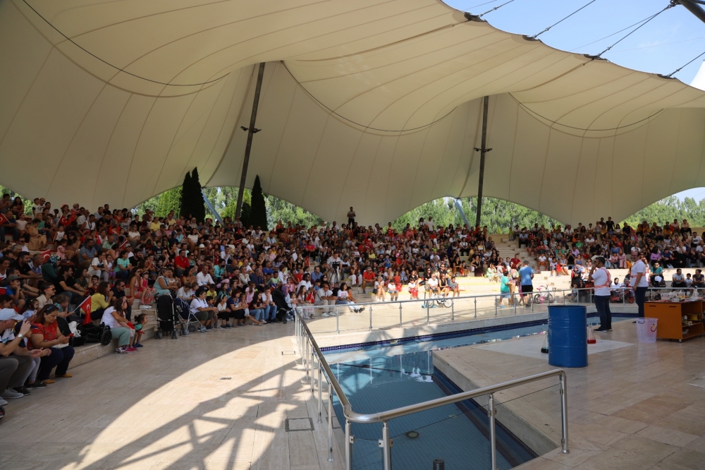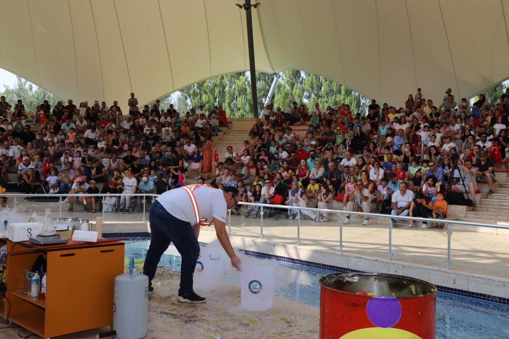 Bilim Deney Merkezi ve Sabancı Uzay Evi’nin Sazova Bilim Kültür ve Sanat Parkı Amfi Tiyatro’da gerçekleştirdiği 100. yıla özel Bilim Gösterisi’ne bilimseverler akın etti. Etkinlikte Büyükşehir Belediyesi görevlileri tarafından da izleyicilere Türk bayrağı dağıtıldı.