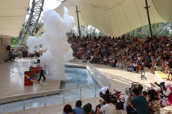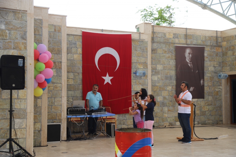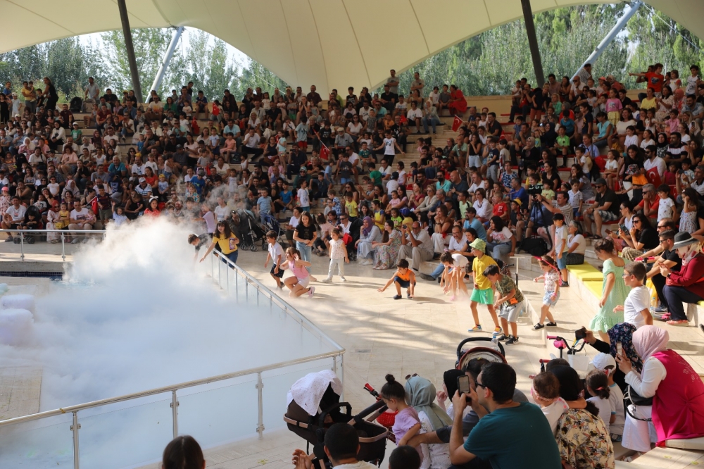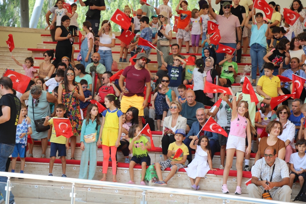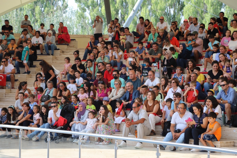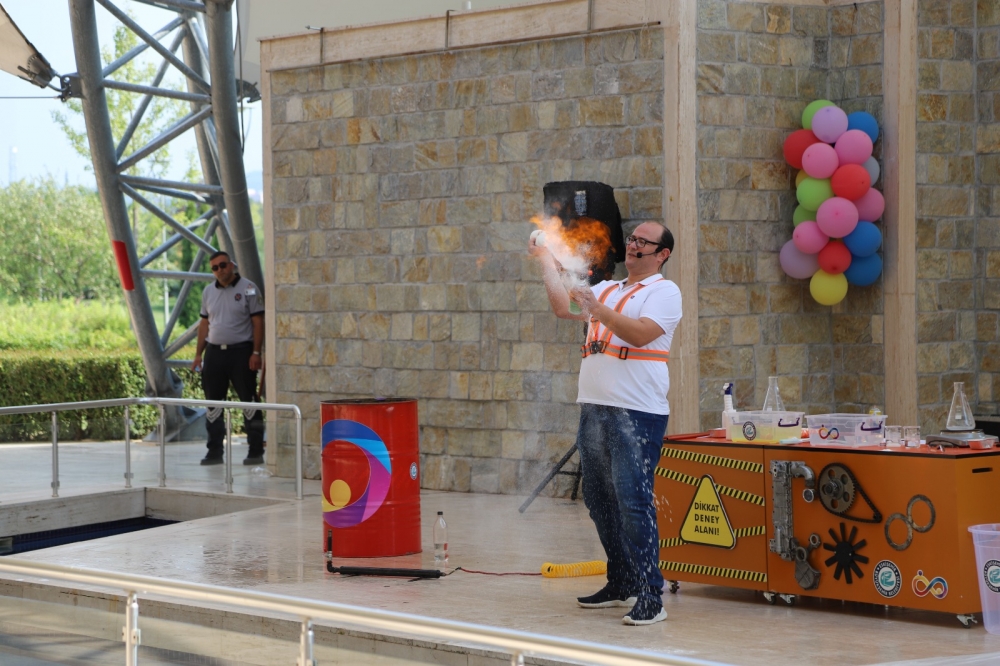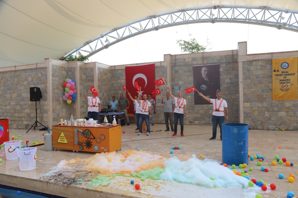 Büyük Önder Mustafa Kemal Atatürk ve silah arkadaşları ile tüm şehitlerimiz için yapılan saygı duruşu, akabinde okunan İstiklal Marşı sonrası gösteriye geçildi. Gösteri sırasında çocuklar büyük heyecan yaşarken, her yaştan bireye bilimi sevdirmek için çalışan Bilim Deney Merkezi ve Sabancı Uzay Evi görevlilerinin sunumu büyük beğeni topladı.