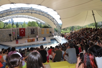 Burada bilimseverlere hitap eden Başkan Yılmaz Büyükerşen, “Çocuklarımızın eğitimini güçlendirmek için hep birlikte onlara özel etkinlikler düzenliyoruz. Çocuklarımız için özel merkezler açıyoruz. Masal Şatomuz, çocuklarımızın hayal güçlerini güçlendirirken, Bilim Deney Merkezi ve Sabancı Uzay Evimiz de bilim konusunda çocuklarımıza çok önemli bir hizmet veriyor. Tabi bunun yanı sıra Hayvanat Bahçemiz ve Çocuk Hakları Birimimiz gibi merkezlerimizde de çocuklara yönelik çalışmalarımız sürüyor. Her konuda örnek bir şehrimiz var. İnanıyorum ki, şehrimizden birçok bilim insanı da geleceği şekillendirecek. Gelecek Eskişehir’den geçecek. Bilime olan ilginize teşekkür ediyor, tekrar şehrimizin düşman işgalinden kurtuluşunun 100. yılını kutluyorum” dedi.