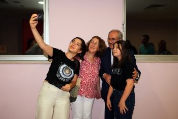 Konser sonunda Başkan Büyükerşen’e büyük ilgi gösteren vatandaşlar, fotoğraf çektirmek için sıraya girerken Büyükerşen de fotoğraf isteklerini geri çevirmedi.