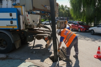 Aşırı yağışlarda su taşkınlarının önüne geçmek için tıkanan yağmur suyu hatları ile ızgaralar periyodik olarak temizleniyor.