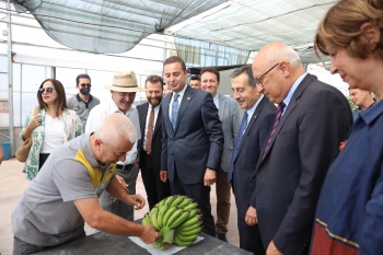 Gezi sonunda Başkan Büyükerşen, CHP Genel Başkan Yardımcısı Akın’a serada yetiştirilen çiçek ve muz hevengi hediye etti. Park Bahçeler ile Bakım Onarım Atölyelerini de gezen Ahmet Akın belediyenin kendi imkanları ile yaptığı çalışmaları, hele ki seralarda muz ağacı yetiştirilmesi düşüncesini çok beğendiğini ifade etti.