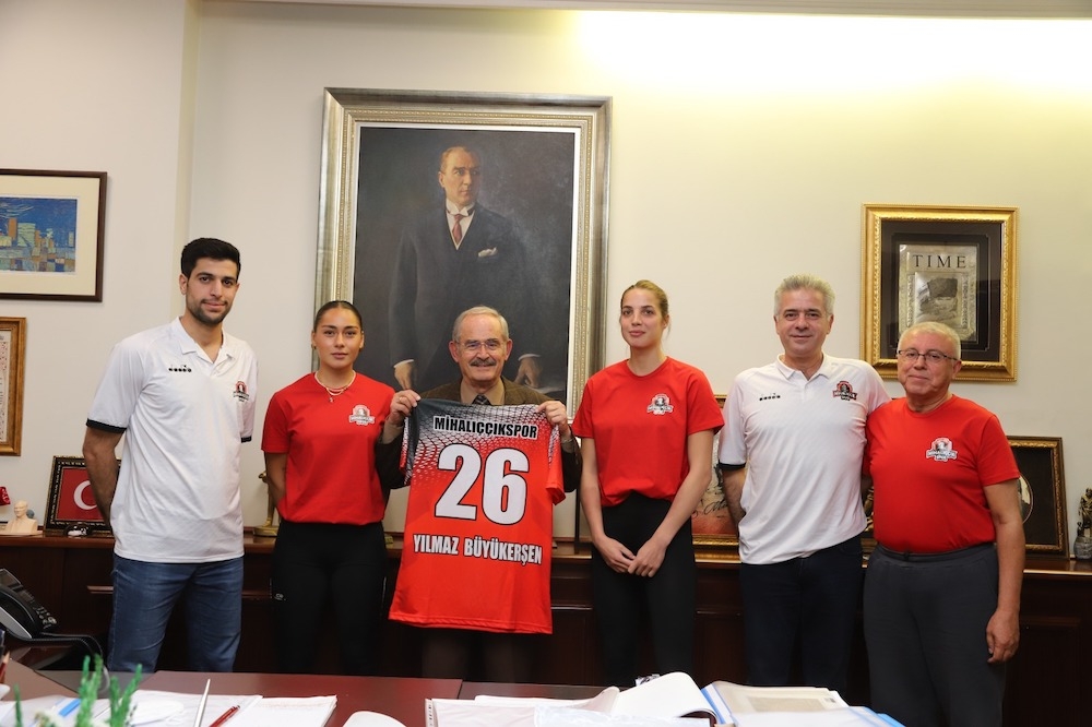 Mihalıççık Belediye Başkanı Haydar Çorum ve beraberindeki Mihalıççıkspor heyeti, Büyükşehir Belediye Başkanı Prof. Dr. Yılmaz Büyükerşen'i ziyaret etti. Ziyarette Büyükerşen’e antrenör ve sporcular tarafından 26 numaralı Mihalıççıkspor forması hediye edildi.
