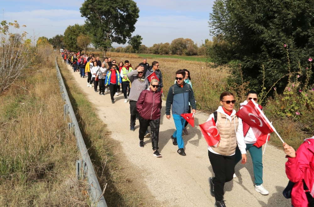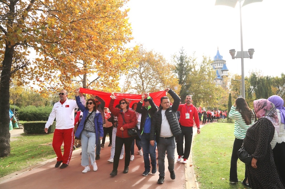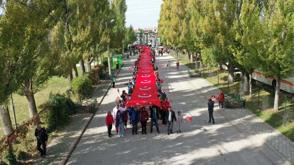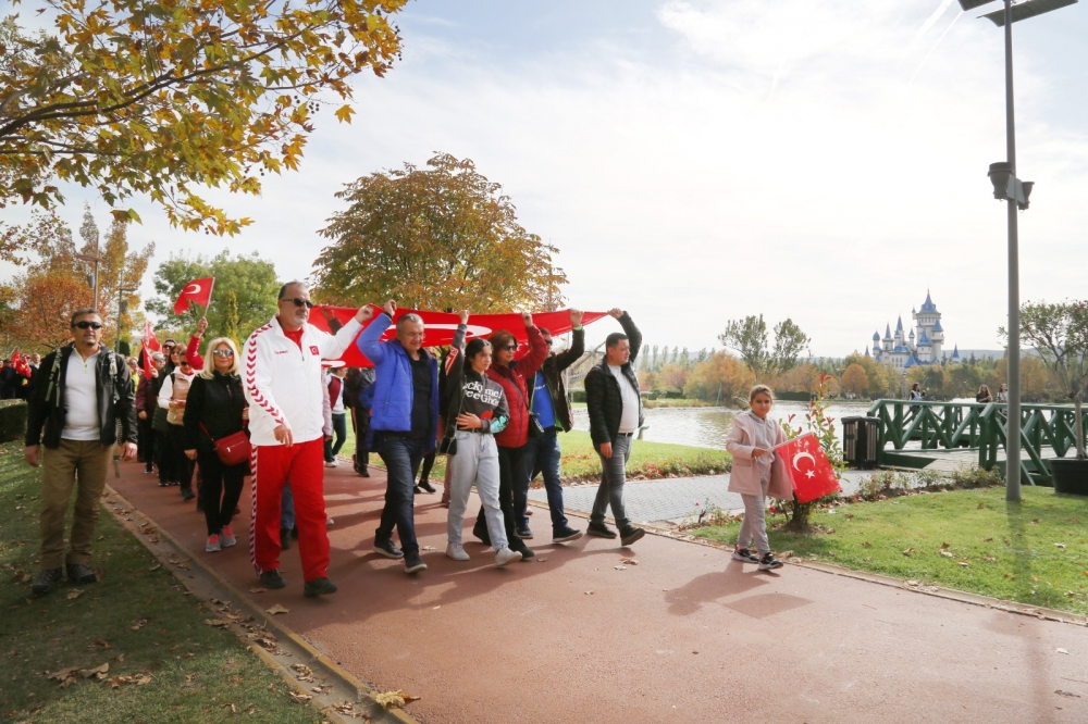 14 yaş ve üzeri vatandaşların katıldığı etkinlikte katılımcılar, Karabayır Bağları’ndan başladıkları yürüyüşte belirlenen güzergâhlardan geçerek Sazova Bilim Sanat ve Kültür Parkı’na ulaştı. Açılan dev Türk bayrağı altında yürüyen katılımcılara Sazova Parkı’nı ziyarete gelen vatandaşlar da alkışlarıyla destek verdiler.