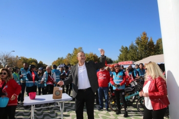 Kaplan’ın bisiklet yolu müjdesi katılımcılar tarafından uzun süre alkışlandı. Daha sonra Genel Sekreter Yardımcısı Deniz Kaplan, Büyükşehir Belediyesi Gençlik ve Spor Hizmetleri Dairesi Başkanı Mehmet Ali Çeliksoy tarafından Sablon Wellness Club’ın destekleriyle yapılan çekilişte, etkinlikte yer alan talihli katılımcılara çeşitli hediyeler verildi.
