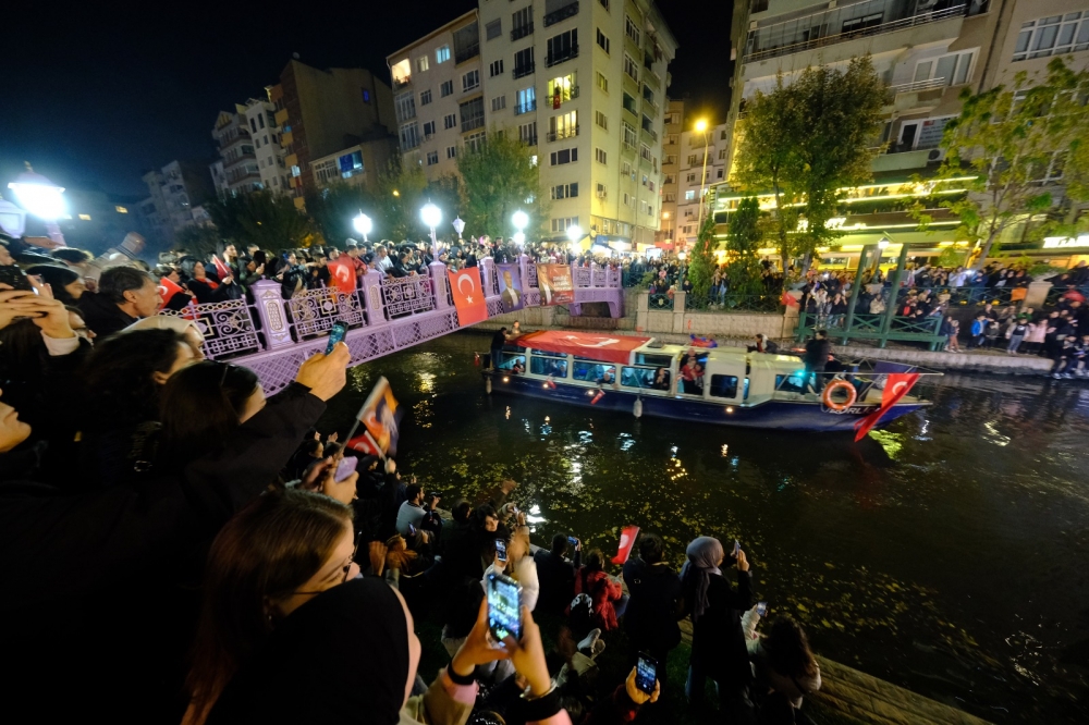 Köprübaşı başta olmak üzere, Adalar Porsuk Bulvarı, köprüler ve sokaklar insan seline dönüşürken, Porsuk Çayı Köprübaşı mevkiinden başlayarak bot ve gondollarla yapılan geçiş sırasında çalınan marşlarla Eskişehirliler büyük coşku yaşadı.