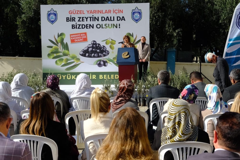 Genel Sekreter Ayşe Ünlüce törende yaptığı konuşmada, “Büyükşehir Belediye Başkanımız Prof. Dr. Yılmaz Büyükerşen yoğun programı nedeniyle aramızda olamadı ancak sizlere sevgi ve saygılarını iletiyorum. Bu güzel, bereketli topraklar İstanbul, Ankara, İzmir gibi metropol şehirlerin sebze ihtiyacının yüzde 30’nun ihtiyacını karşılıyor. Biz de elimizden geldiği kadar Büyükşehir Belediyesi olarak en büyük tarımsal hibelerimizi yapmaya çalışıyoruz. Domates ve marul fidesi dağıttık. İpek böcekçiliğini hem bu bölgede hem ülkemizin diğer bölgelerinde yaygınlaştırmak için dut fidanları dağıttık. Küçükbaş-büyük hayvan desteği, Laçin’de yetiştirdiğimiz yoncaların balya yaparak yem desteği sağladık. Bugün de dünyada barışın, bereketin simgesi zeytin fidanlarını dağıtmaya başlayacağız. Tabi zeytinle ilk defa tanışmıyorsunuz, uzun yıllardır üretimde varsınız. Biz de bu konuda endemik türlerin bulunmasına yönelik bir üniversitemiz ile çalışma yapıyoruz. Bugün Sarıcakaya ve Mihalgazi’de 69 üreticimize 12 bin fidan dağıtmış olacağız. Yılmaz Hocamızın ve bizlerin heyecanını sizlerle paylaşmaktan çok mutluyuz. İlerleyen zamanda sizlerin ürettiği zeytinleri ve zeytin bahçelerini gördüğümüzde bir kat daha mutlu olacağız. Zeytin fidanlarını sizlere emanet ediyorum. Hayırlı olsun.” dedi.